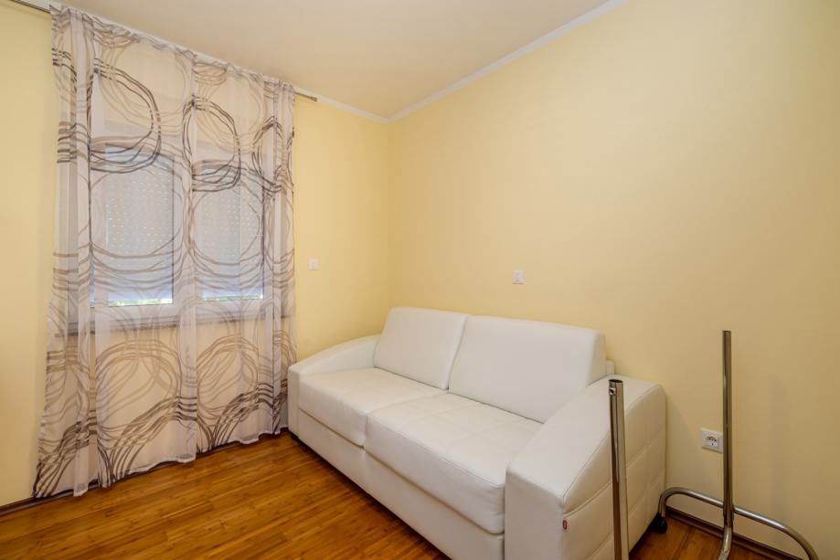 Velika prednost ove nekretnine je garaža od 25 m², što osigurava komfor i sigurnost parkiranja. Stan se prodaje potpuno namješten, spreman za useljenje.