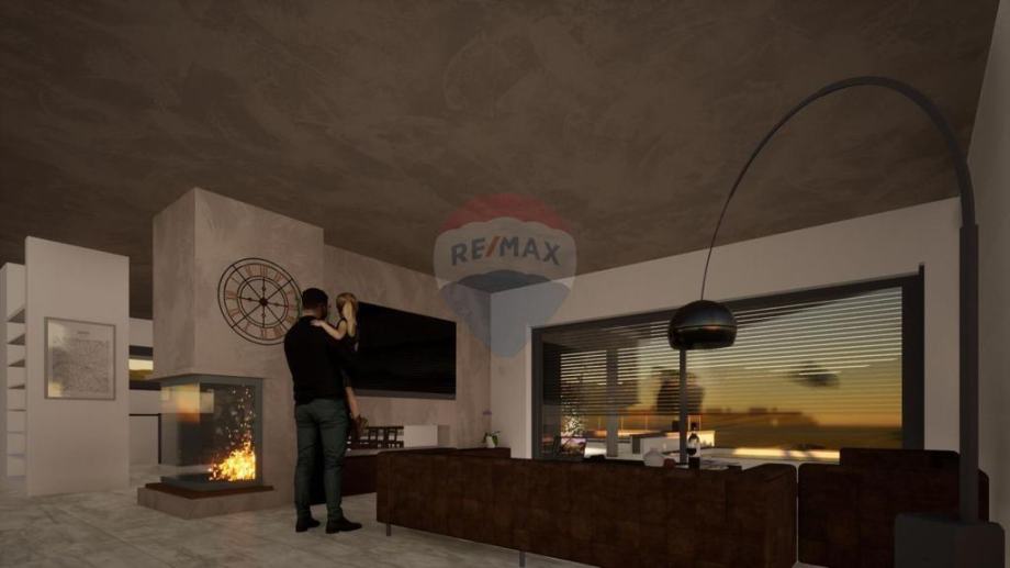 U prizemlju vile nalazi se ulazni prostor, wc, kuhinja i blagovaona, dnevni boravak, hobby soba, natkrivena terasa, te krovna terasa od 12.51m2.