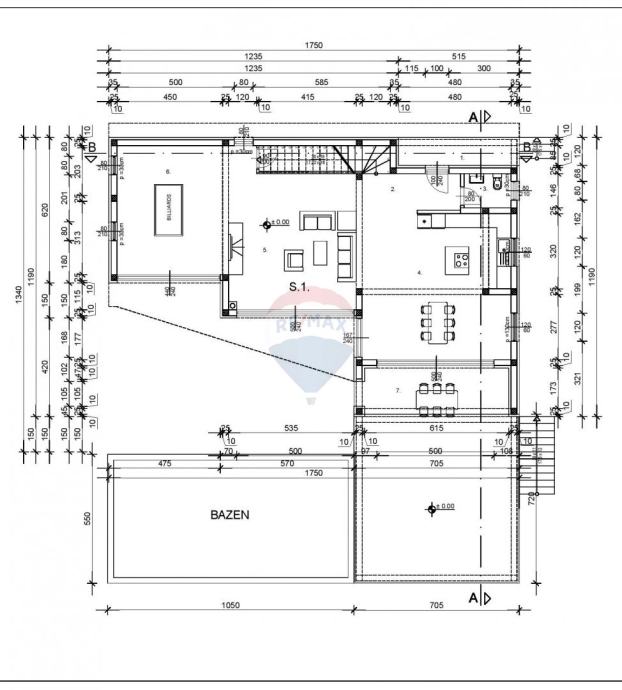 Po projektu, vila se sastoji od podruma, prizemlja i 1.kata i proteže se na 430 m2.