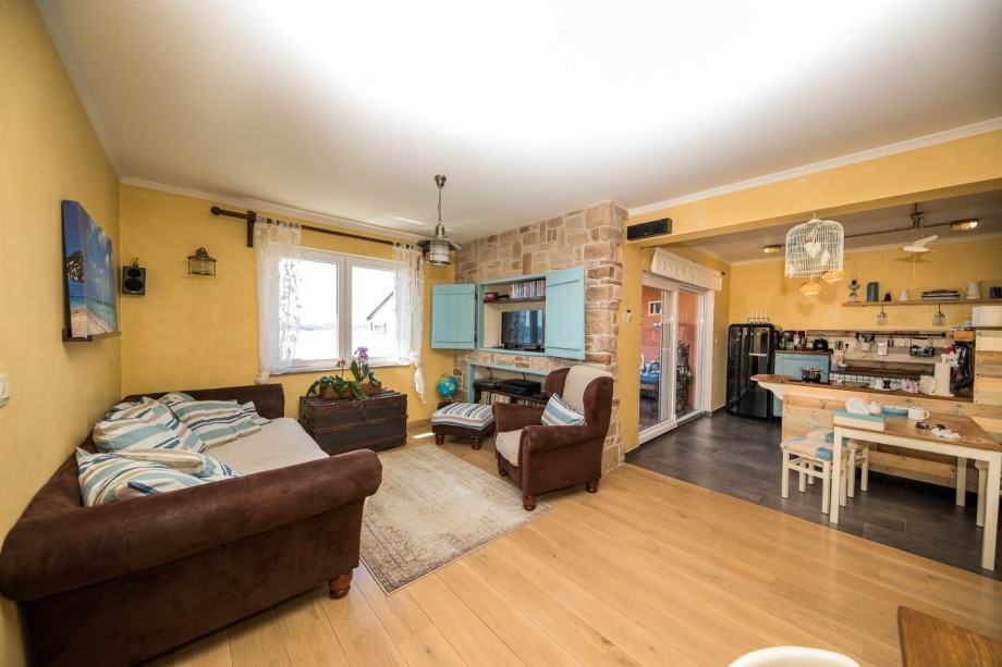 U većini prostorija se nalazi namještaj po mjeri. Grijanje je na struju ( klima + konvektor radijatori).