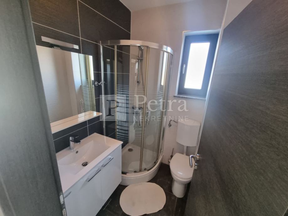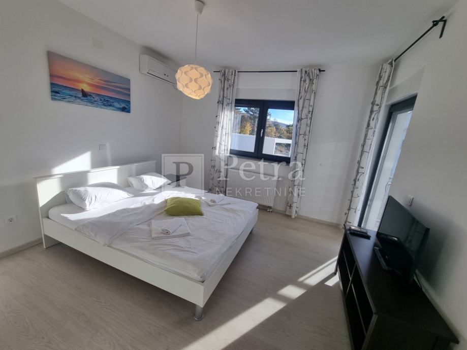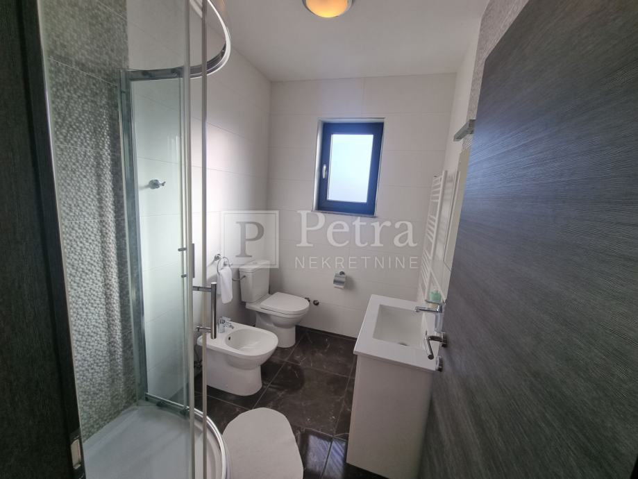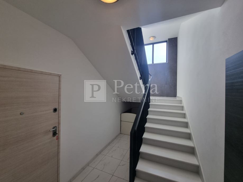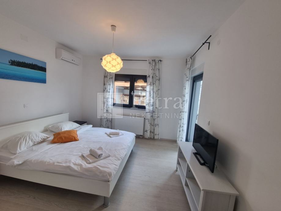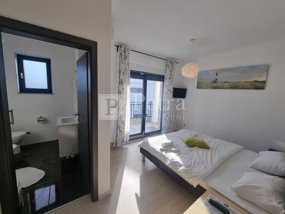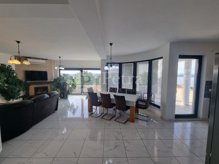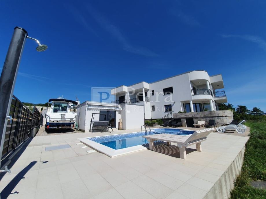 Unutarnjim stubištem se dolazi do prvog kata gdje se nalazi šest spavaćih soba svaka sa vlastitom kupaonicom i balkonom. U sklopu jedne od soba smještena je kuhinja. Stubište vodi na krovnu terasu sa koje se pruža prekrasan panoramski pogled. Svaka soba je klimatizirana, centralno grijanje je na pelete. U prizemlju kuće nalazi se konoba i roštilj idealno mjesto za druženje. U lijepo uređenoj okućnici su bazen i sauna.