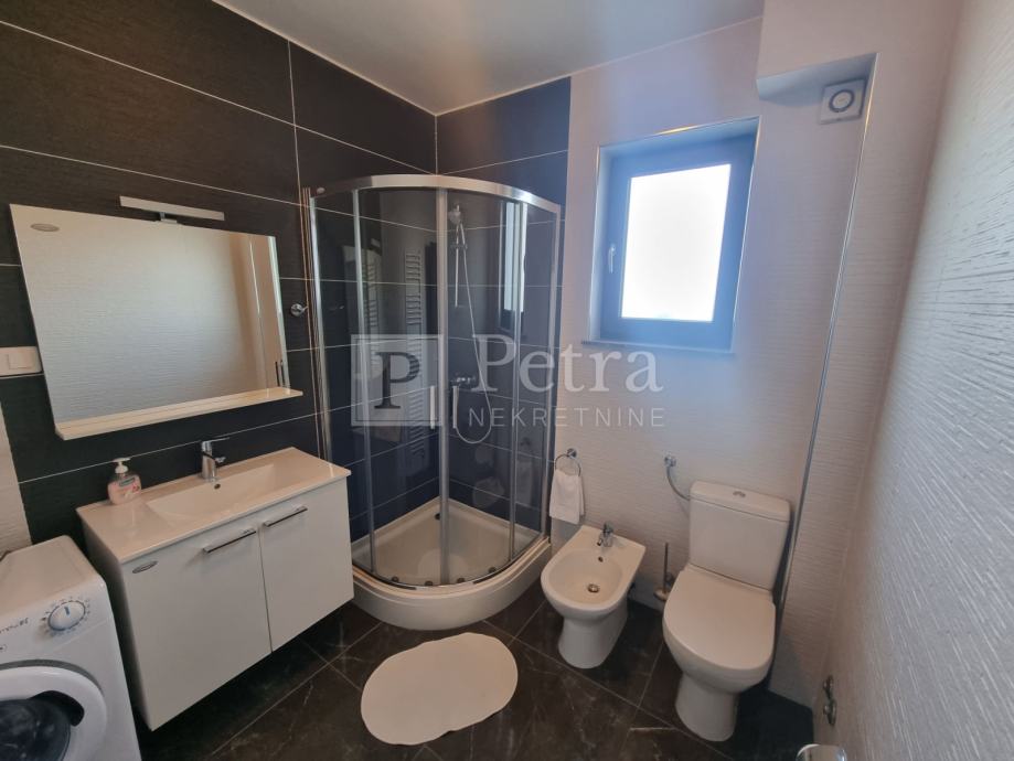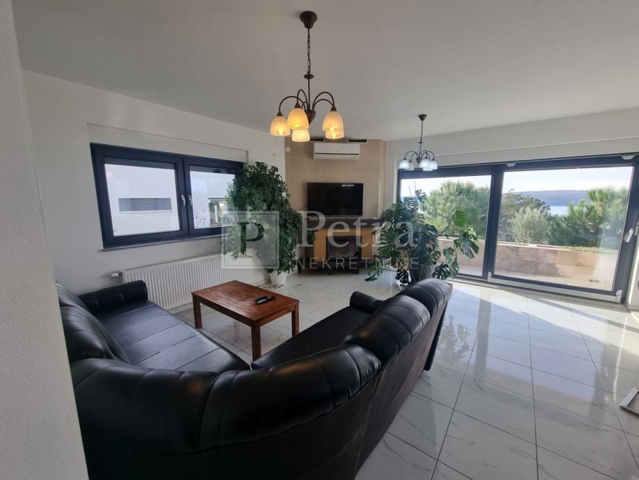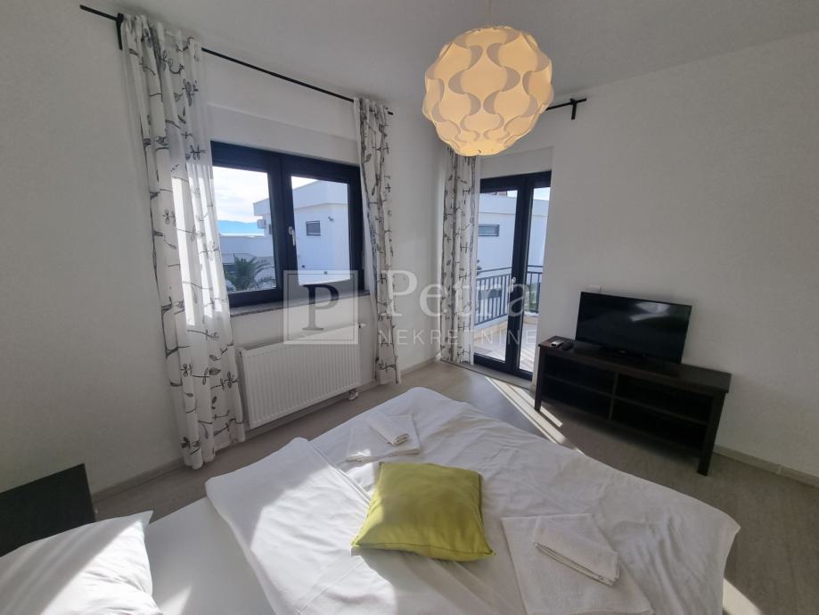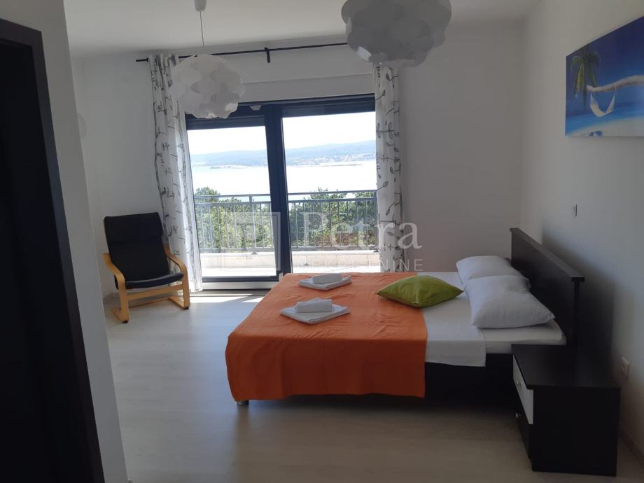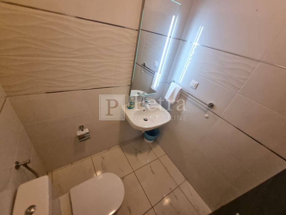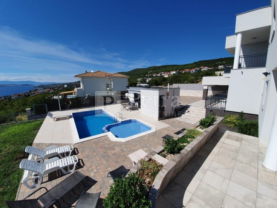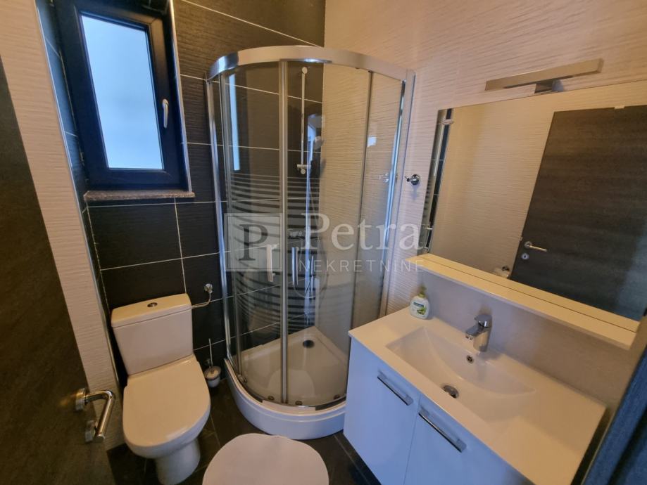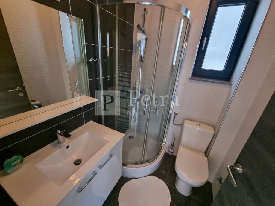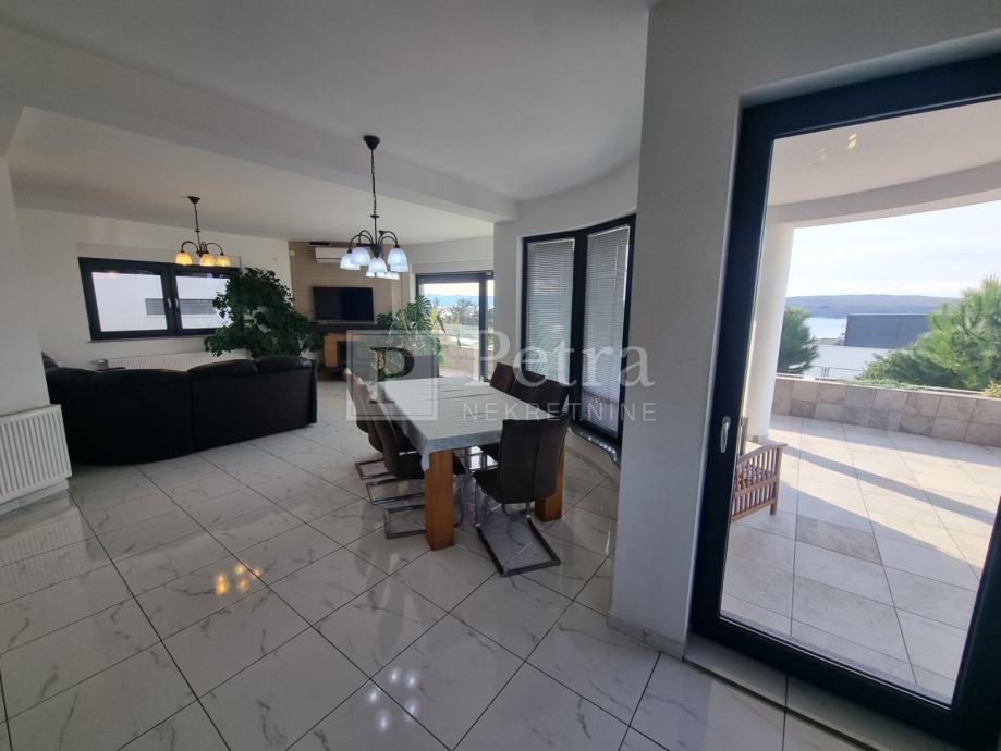 Unutarnjim stubištem se dolazi do prvog kata gdje se nalazi šest spavaćih soba svaka sa vlastitom kupaonicom i balkonom. U sklopu jedne od soba smještena je kuhinja. Stubište vodi na krovnu terasu sa koje se pruža prekrasan panoramski pogled. Svaka soba je klimatizirana, centralno grijanje je na pelete. U prizemlju kuće nalazi se konoba i roštilj idealno mjesto za druženje. U lijepo uređenoj okućnici su bazen i sauna.