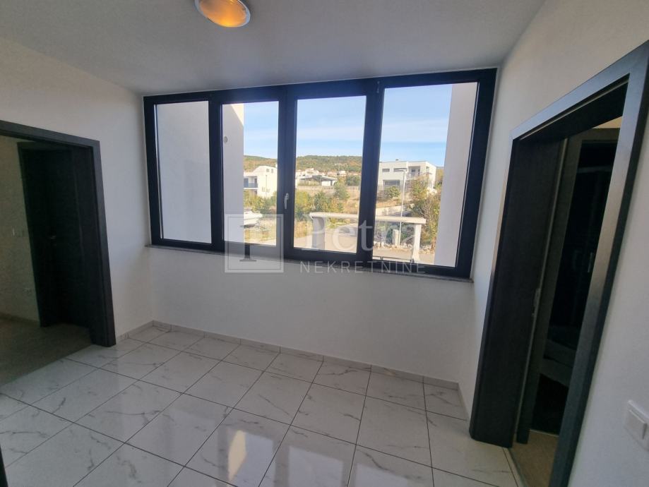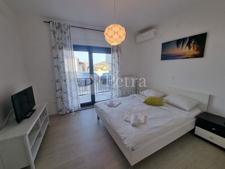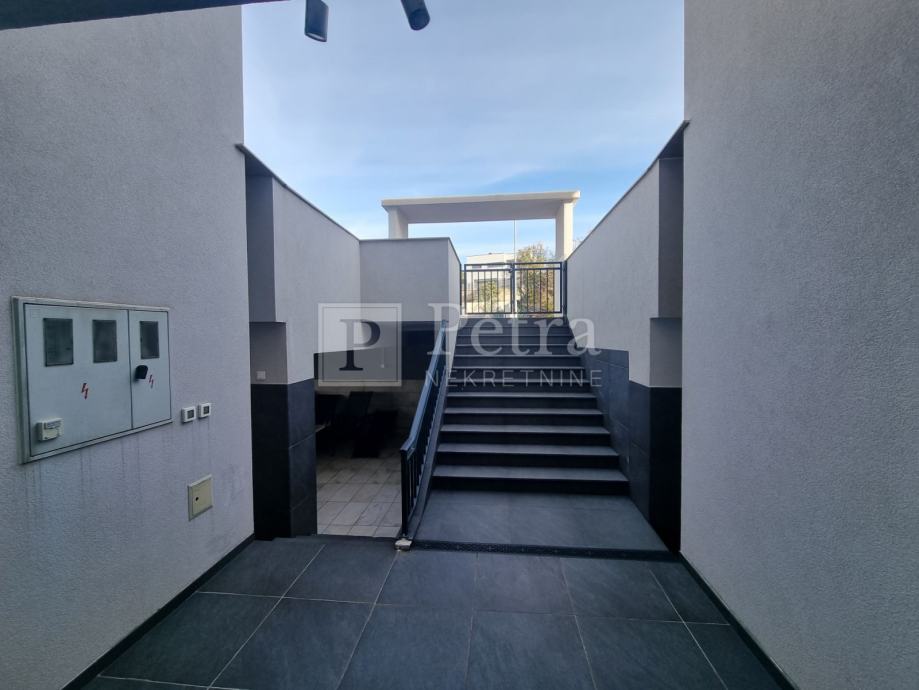 Sastoji se od prizemlja i kata. Svaka etaža ima zaseban ulaz. U prizemlju se nalaze dnevni boravak s kuhinjom i blagovaonom, te četiri spavaće sobe sa vlastitom kupaonicom i balkonom. U hodniku su toalet i ostava. Izlaz na terasu je sa južne strane iz dnevnog boravka i kuhinje.