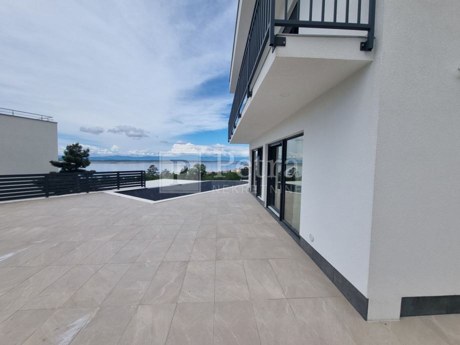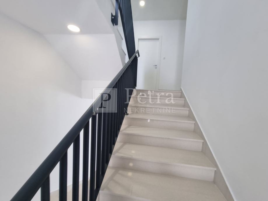 Vila s bazenom na odličnoj lokaciji u mirnom predijelu grada. Sastoji se od prizemlja i kata. U prizemlju se nalazi prostrani dnevni boravak s kuhinjom i taoaletom, te spavaćom sobom i kupaonicom. Izlaz je na terasu na kojoj se nalazi bazen i sunčalište. Na katu su četiri spavaće sobe svaka sa vlastitom kupaonicom i izlazom na balkon, te dvije manje ostave u hodnicima. Pogled na more je iz svih prostorija. Osim prkinga ima i garažu za dva automobila. U suterenu se nalazi podrum. Nekretnica idealna za bavljenje turizmom!