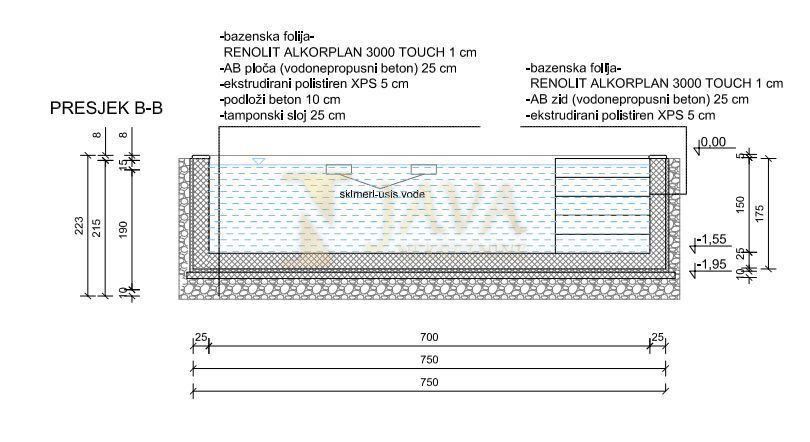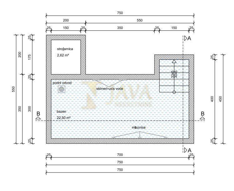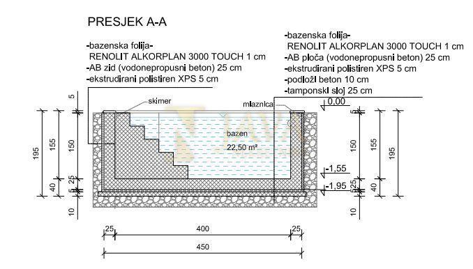 * Infinity bazen 22,5 m2 s hidromasažnim dijelom