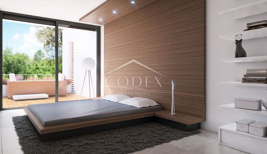 Zgrada se ističe ravnim krovom, aluminijskom stolarijom s velikim staklenim stijenama, vrhunskom termoizolacijom, keramikom i drvenim podovima visoke kvalitete, što jamči kvalitetnu gradnju.