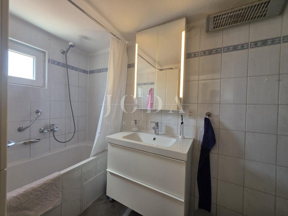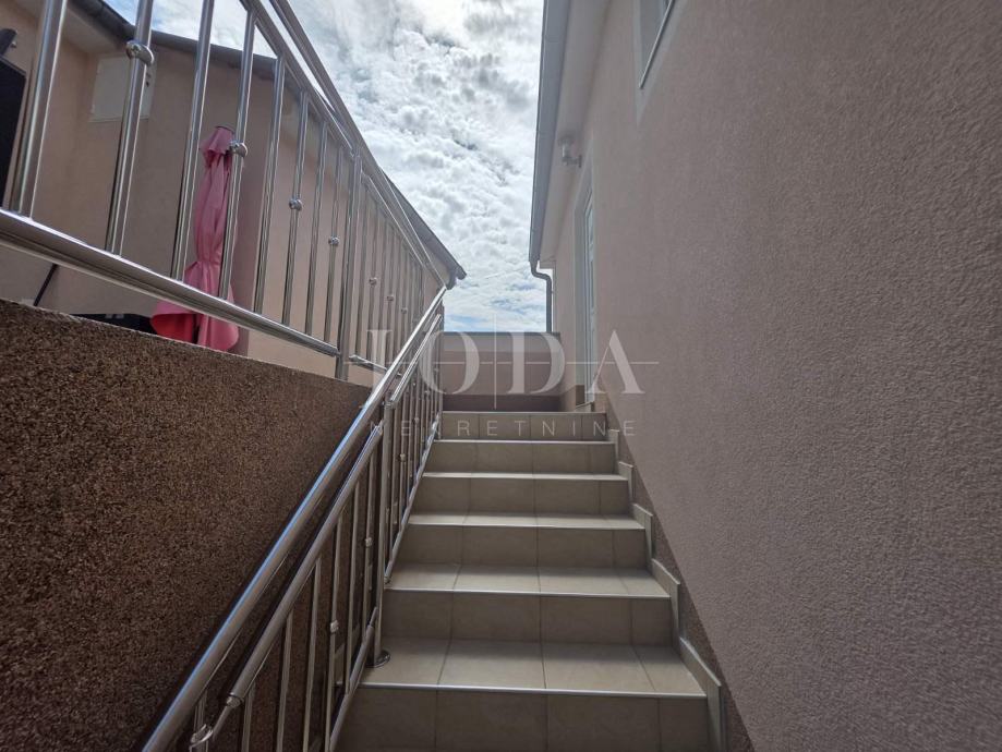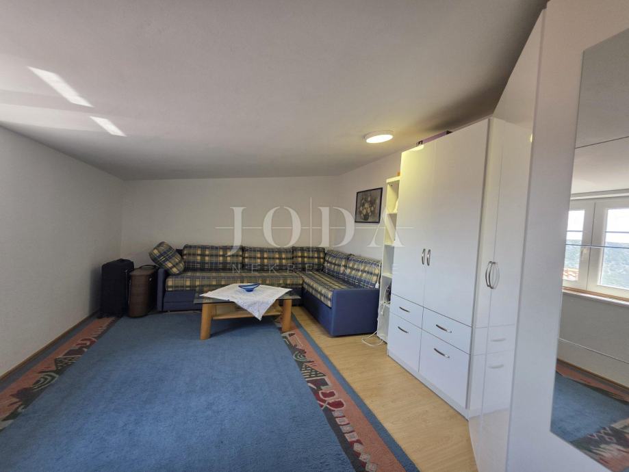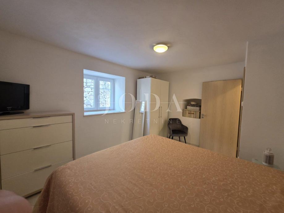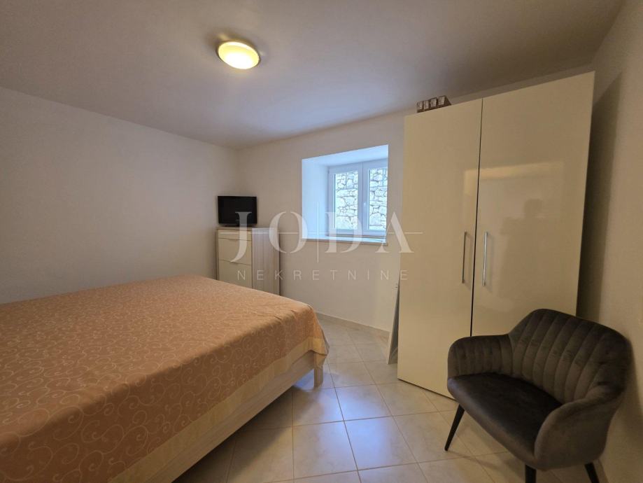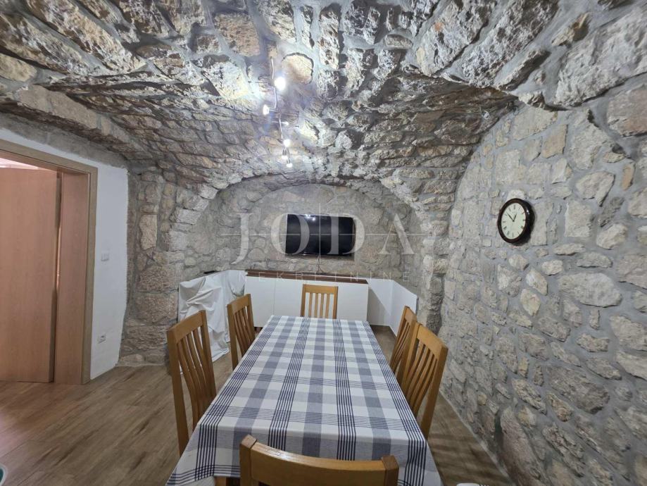 Prodaje se kuća na dvije etaže smještena u mirnom i opuštajućem okruženju, idealna za cjelogodišnji boravak, odmor ili kao sigurna investicija. U prizemlju se nalazi stan s dvije spavaće sobe, kuhinjom i kupaonicom, dok posebnu vrijednost prostoru daje kamena prostorija koja se može koristiti kao konoba ili dnevni boravak. Na istom nivou nalazi se i garaža. Vanjskim stepenicama dolazi se na kat gdje su smještene dvije stambene jedinice – garsonijera i dvosobni stan – povezane zajedničkom terasom. Prvi kat pruža prekrasan pogled na more. Nekretnina se prodaje potpuno namještena i spremna za korištenje, a u vlasništvu je i parkirno mjesto. Zahvaljujući mirnoj lokaciji i mediteranskom ugođaju, ova kuća predstavlja savršeno mjesto za uživanje, odmor i kvalitetan život kroz cijelu godinu.