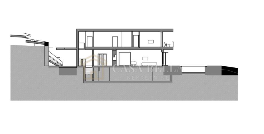 Prema projektu, vila je raspoređena na podrum, prizemlje i kat.