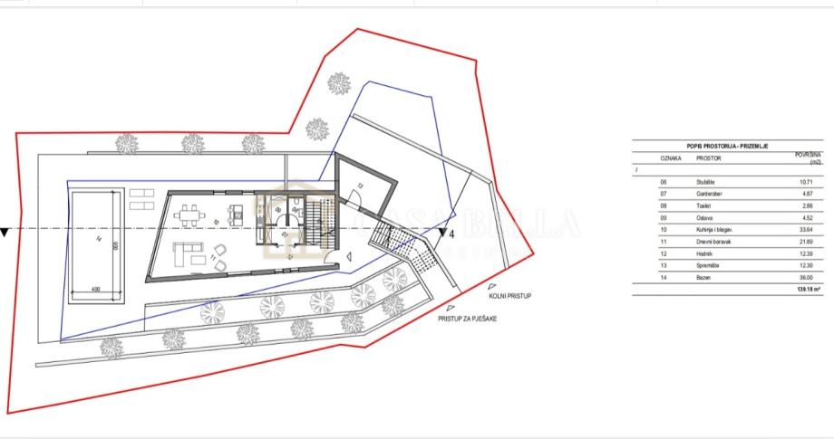 Zemljište površine 867 m² ima izrađen projekt i ishođenu građevinsku dozvolu za izgradnju moderne vile s bazenom.