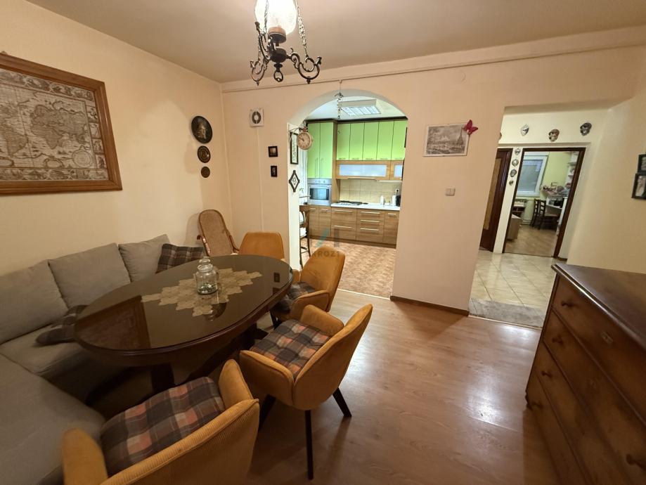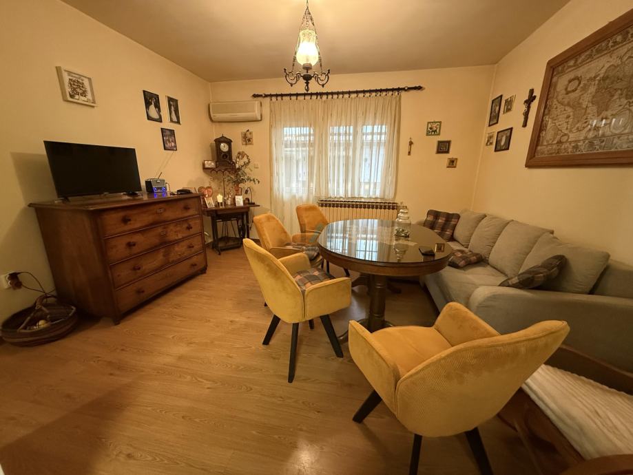 Prodaja, stan, garaža, Crikvenička, Trešnjevka, stan 61 m2, garaža 32 m2 ( 2 parkirna mjesta dim 545x 580 cm, vis 250 cm) 3 s, visoko prizemlje. Odlična lokacija, velika terasa, trostrana orijentacija, kuhinja sa prozorom, prostrane sobe, namještaj u odličnom stanju, velika garaža, mirno okruženje. 200 m od trgovina, Parka Stara Trešnjevka, tramvajske stanice ( linije 3, 9, 12), osnovna i srednja škola na 500 m.