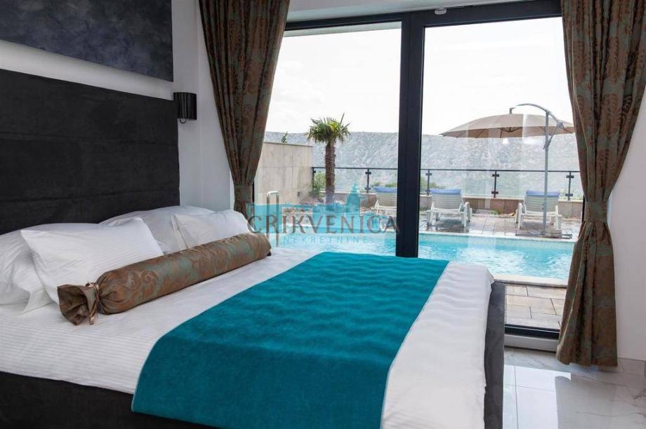 Na katu stana nalaze se tri prostrane, luksuzno opremljene spavaće sobe sa vlastitim kupaonicama. Dvije sobe imaju balkon dok je jedna od soba izvučena izvan gabarita ville te pruža poseban pogled na more i okolicu. Stan ima ostavu površine 6 m2 i 3 parkirna mjesta.