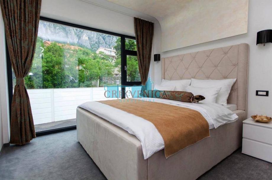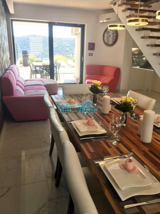 Na katu stana nalaze se tri prostrane, luksuzno opremljene spavaće sobe sa vlastitim kupaonicama. Dvije sobe imaju balkon dok je jedna od soba izvučena izvan gabarita ville te pruža poseban pogled na more i okolicu. Stan ima ostavu površine 6 m2 i 3 parkirna mjesta.