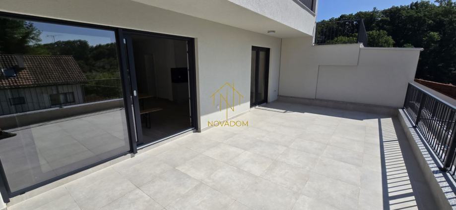 Stan se sastoji se od open space dnevnog boravka s kuhinjom i blagovaonom, tri spavaće sobe, dvije moderno uređene kupaone s toaletom, hodnika te velike prostrane terase s pogledom na zelenilo i te prostranog vrta. U cijenu najma uključena su 2 garažna i jedno vanjsko parkirno mjesto te veće spremište.