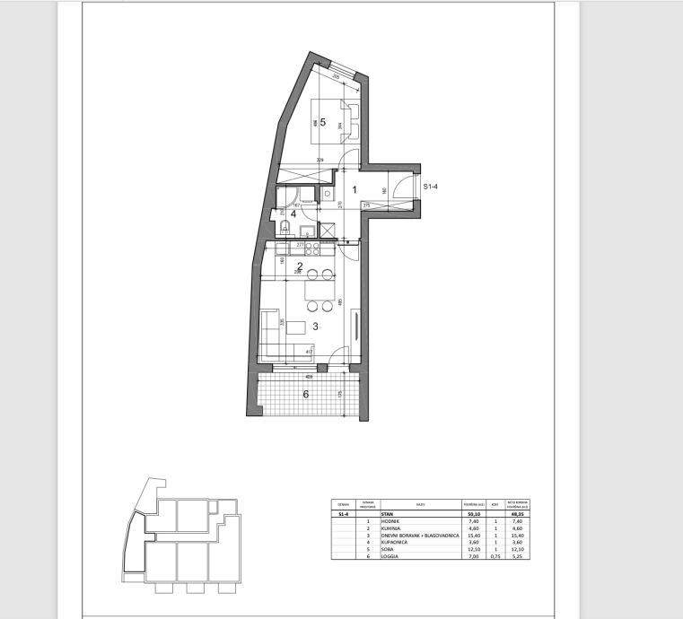 Zgrada sadrži 16 stambenih jedinica od čega su 2 jednosobna stana od 30m2, 10 dvosobnih stanova površine od 38 m2 do 51 m2, 3 trosobna stana od 67 m2 i 1 četverosobni stan površine 101 m2 te 16 pripadajućih garažnih parkirališnih mjesta i 1 vanjsko parkirališno mjesto.