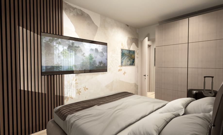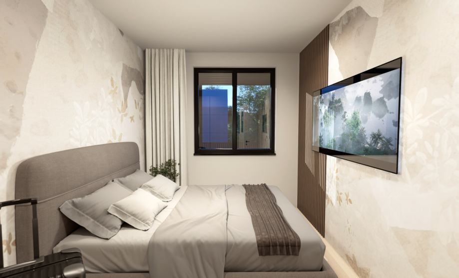 Podovi dnevne i spavaće sobe obložene su troslojni hrastovim parketom prilagođenim za podno grijanje.