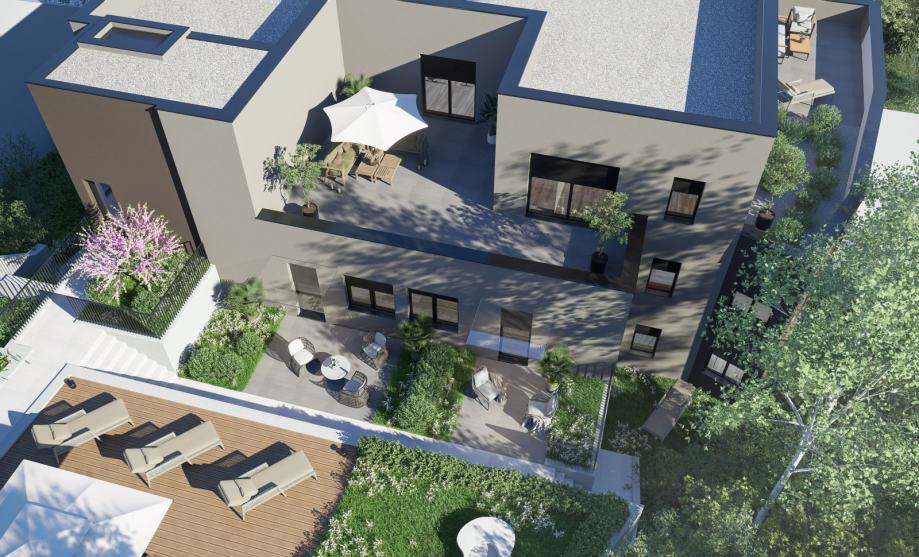 Mogućnost dodatne kupnje uređenih vrtova sa stražnje (zapadne) strane zgrade.