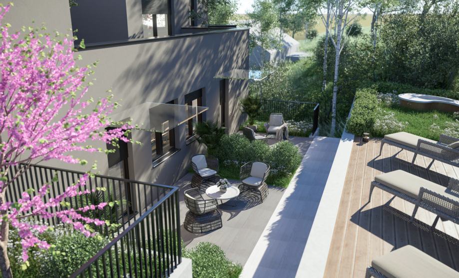 Mogućnost dodatne kupnje uređenih vrtova sa stražnje (zapadne) strane zgrade.