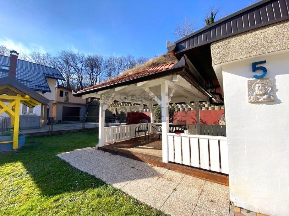 Kuća je okružena prostranom, uređenom okućnicom gdje se nalazi i garaža (mogućnost odlaganja bicikla i sl.).U dvorištu je također osigurano vanjsko parkirno mjesto.