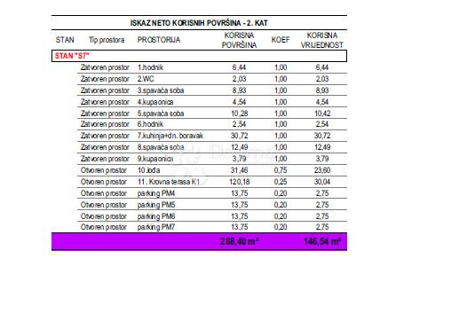 Površina stana je 146,54 m2 korisne vrijednosti.