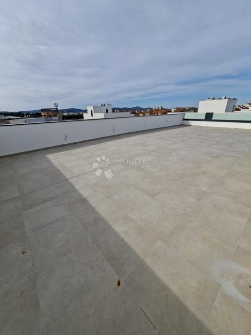 Stan se sastoji od tri spavaće sobe od kojih je jedna mastrer spavaća sa vlastitom kupaonom, kuhinje, blagovaone, dnevnog boravka, druga kupaona, WC-a , lođe na koju se izlazi iz dnevnog boravka i kuhinje te vlastite krovne terase od 106,63m2. U zgradi postoji lift što olakšava prijenos stvari i svakodnevno kretanje.