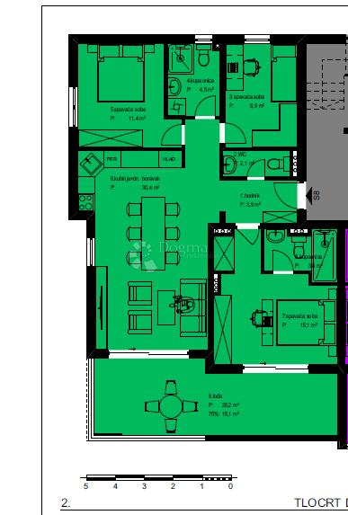 U vrhunsko novoizgrađenoj zgradi sa 8 stanova u naselju Crvene kuće prodaje se Penthouse oznake S8 smješten na drugom katu.