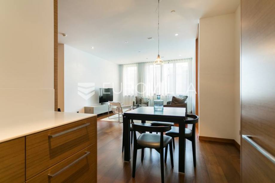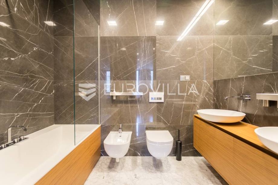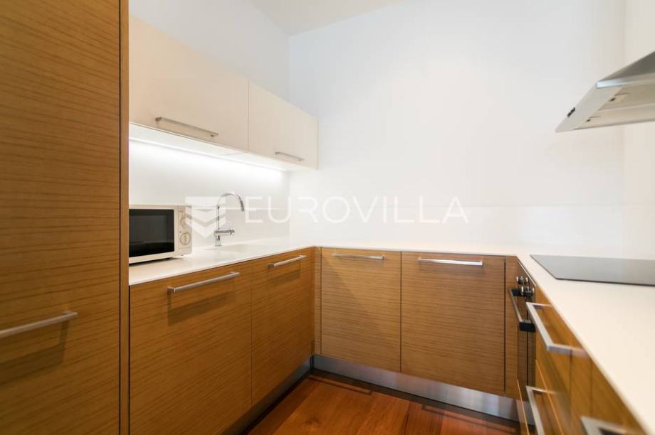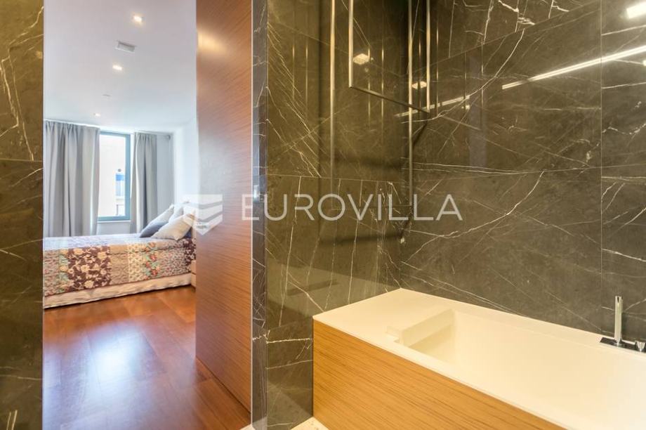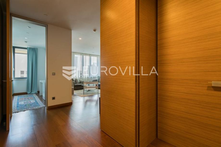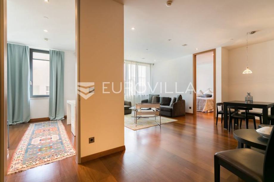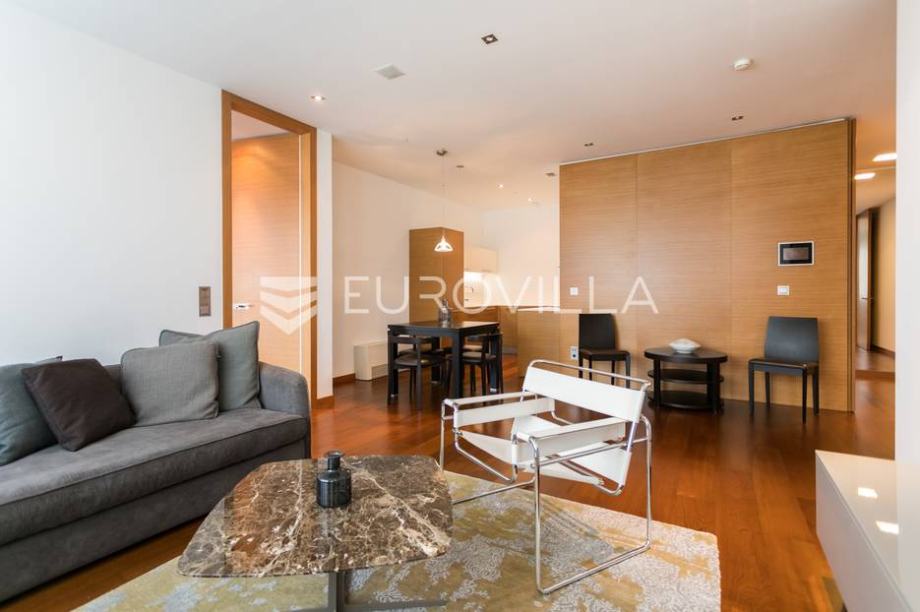 Cvjetni trg, beautifully decorated and furnished luxury two bedroom apartment 100m2 with parking space in the garage. Total billing approx. 110m2. It is located in the newly built residential residential complex "Cvjetni".The apartment consists of a living room with kitchen and dining area, 2...