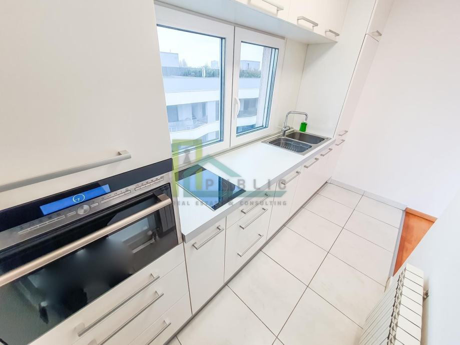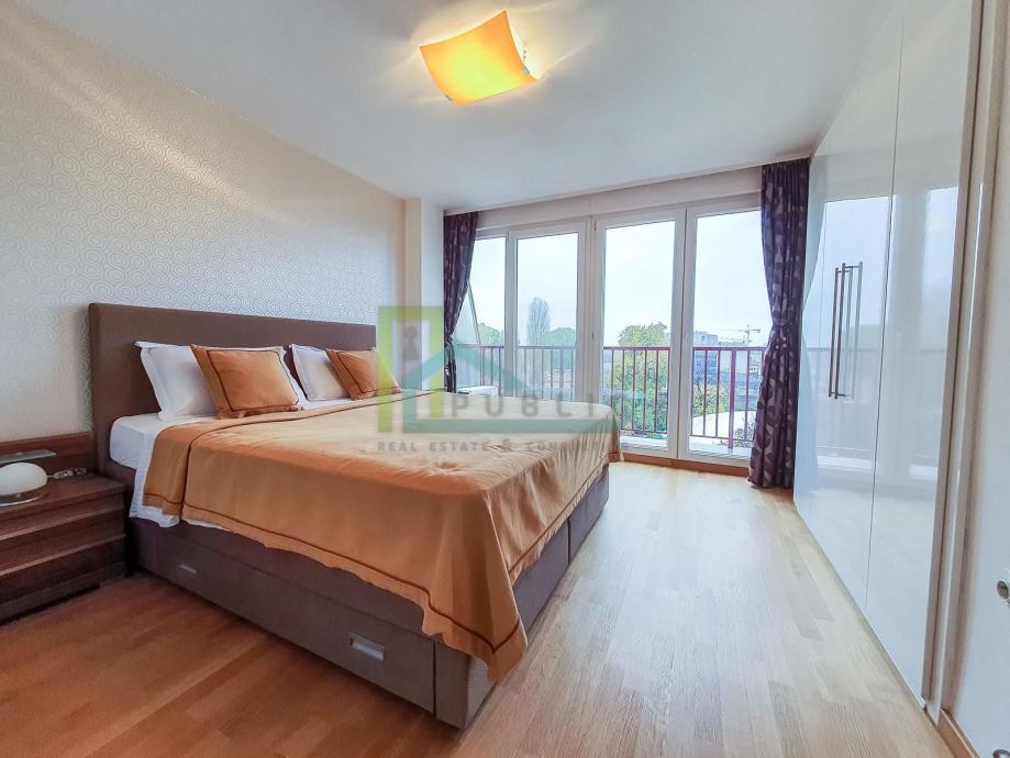 A beautiful apartment for sale in Cvjetno naselje (Veslačka ulica). The apartment has a panoramic view to the south towards the Hendrix Bridge, the Sava River, and to the north towards Sljeme.