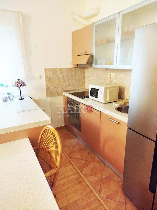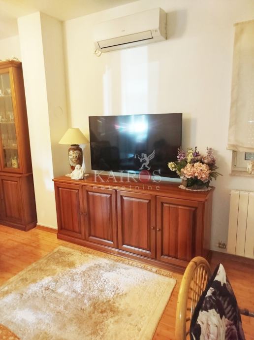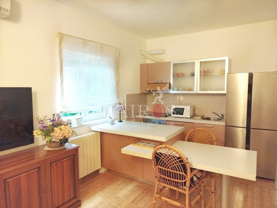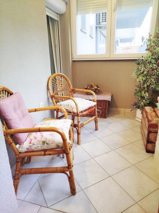 DONJI ZAMET, stan površine 50 m2, jednosoban s dnevnim boravkom, s ostakljenom lođom (6 m2), na 1. katu novije građene zgrade, s vlastitim parkirnim mjestom. Stan je kompletno namješten i opremljen kućanskim aparatima (perilica suđa, perilica rublja, mikrovalna pećnica, hladnjak...).