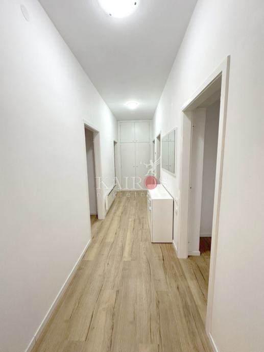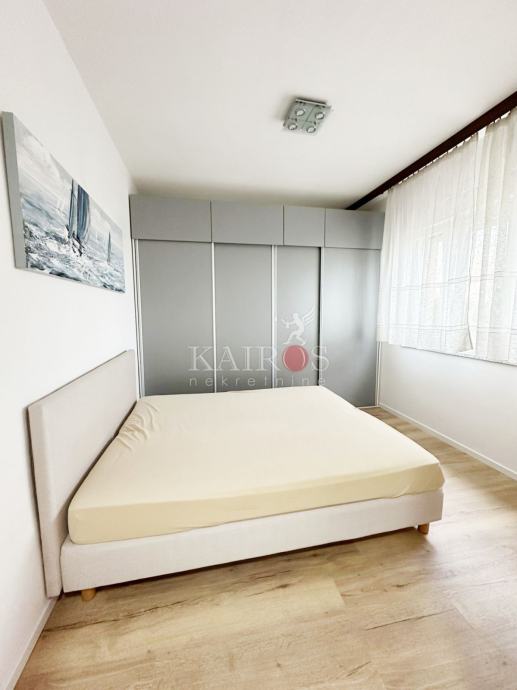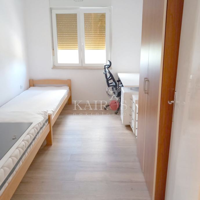 DONJI ZAMET, iznajmljujemo stan površine 74 m2, dvosoban s dnevnim boravkom i balkonom na jug, pogled na more. Stan se nalazi na 1. katu, iznajmljuje se dugoročno. Idealno za obitelj s jednim većim djetetom. Ljubimci nisu dobrodošli.