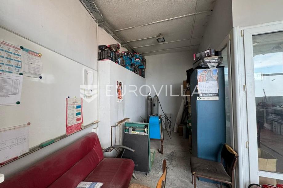 Đakovo, Industrijska zona, potpuno funkcionalna poslovna zgrada površine 750 m2, uz dodatno zemljište od 400 m2. Objekt predstavlja iznimnu investicijsku priliku, s obzirom na to da je trenutno gotovo u cijelosti iznajmljen (6 od 7 prostora), što osigurava stabilan i trenutačan prihod.Zgrada se sastoji od 7 poslovnih prostora različitih veličina i namjena, uključujući skladišta, urede, radionice, autopraonicu i prostor za evente. Svi prostori imaju posebne ulaze, što omogućuje fleksibilnost u najmu ili vlastitom korištenju.Struktura prostora:1. prostor: ured/skladište - 112 m2 (4 prostorije, ostava, WC)2. prostor: autopraonica - 88 m2 (radiona, ured, kupaonica)3. prostor: 50 m2 (3 radne prostorije, WC)4. prostor: event room - 150 m2 (sala, kuhinja, soba, kupaonica, hodnik)5. prostor: 40 m2 (3 radne prostorije)6. prostor: skladište - 250 m2 (jedna velika prostorija)7. prostor: 150 m2 (2 prostorije - trenutno slobodan)Zgrada je u potpunosti renovirana 2025. godine; nov krov, stolarija, kompletno unutarnje uređenje. Priključena je na struju, vodu i kanalizaciju, dok je plinska mreža ispred objekta. Grijanje je osigurano putem toplane; bez dodatnih troškova. Ispred objekta se nalazi asfaltirani parking s brojnim parkirnim mjestima za korisnike i klijente.Jedna od važnih prednosti je i mogućnost postavljanja solarnih panela na krovište zgrade (već u dogovoru), uz dodatni prihod od 10% proizvedene električne energije za budućeg vlasnika.Ostale informacije na upit....