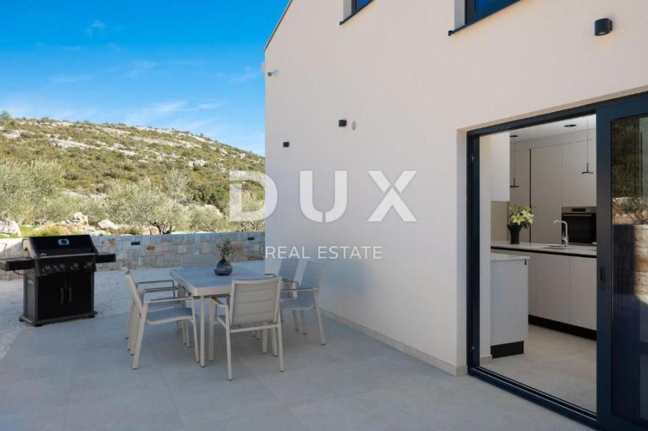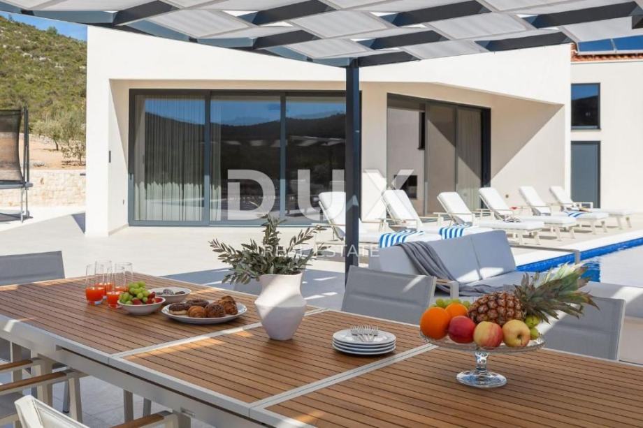 Luksuzna vila na odličnoj lokaciji u blizini Trogira. Radi se o iznimno modernom dizajnu s pomno uređenim interijerom kao i eksterijerom.