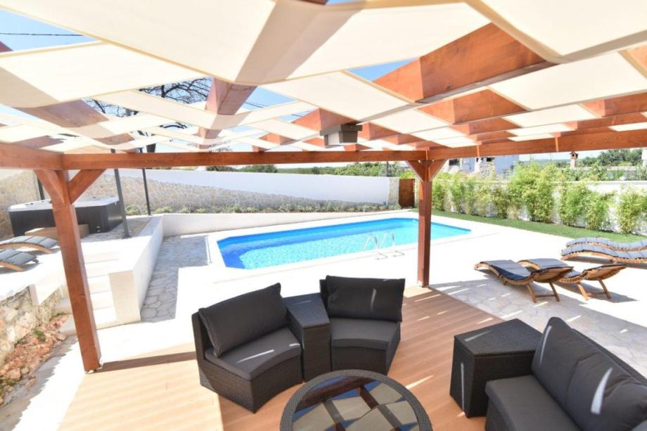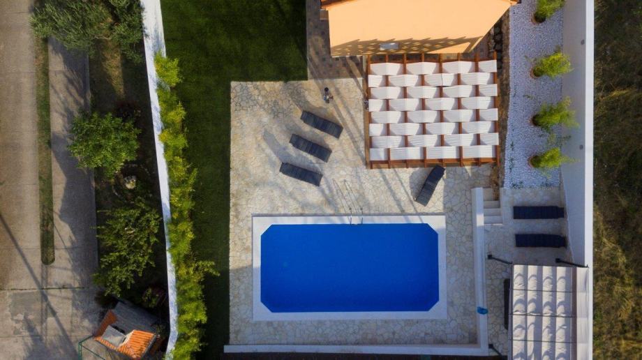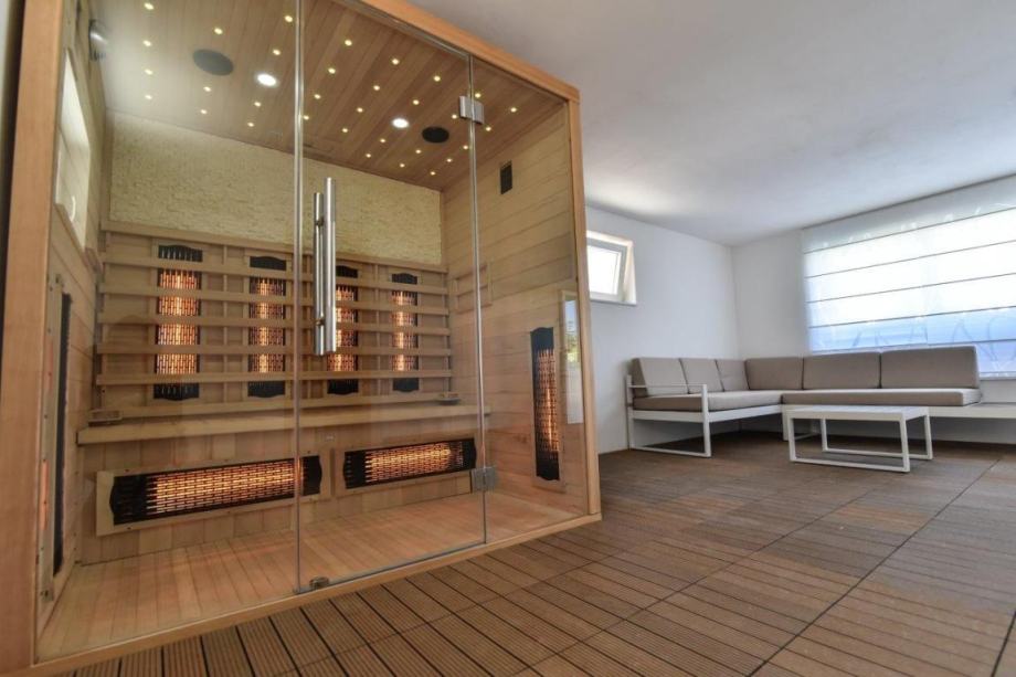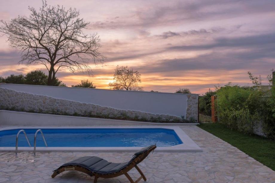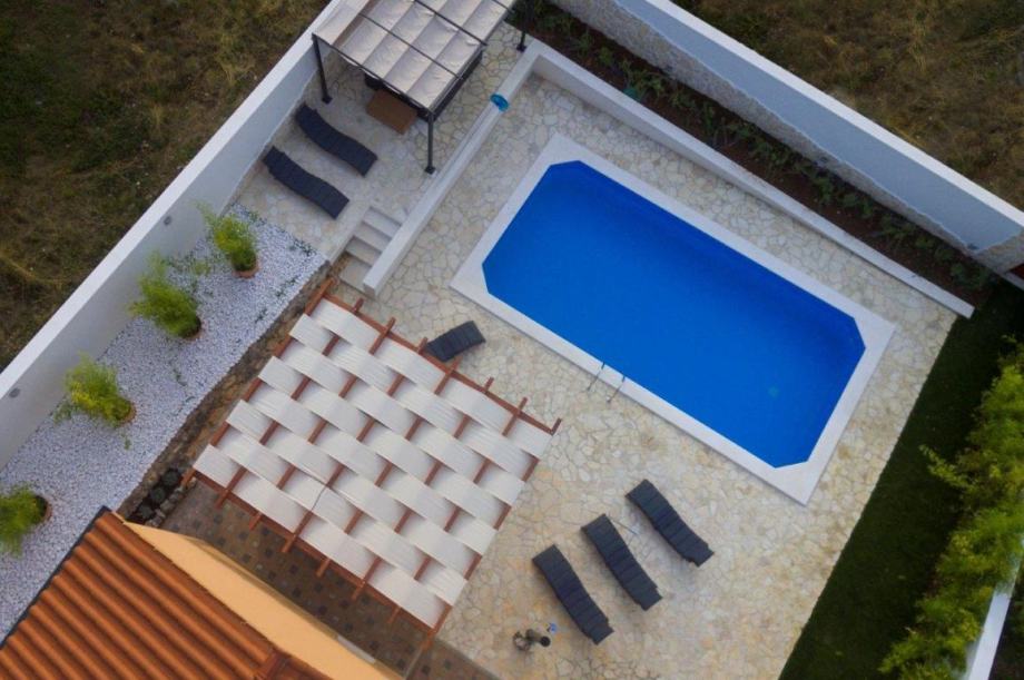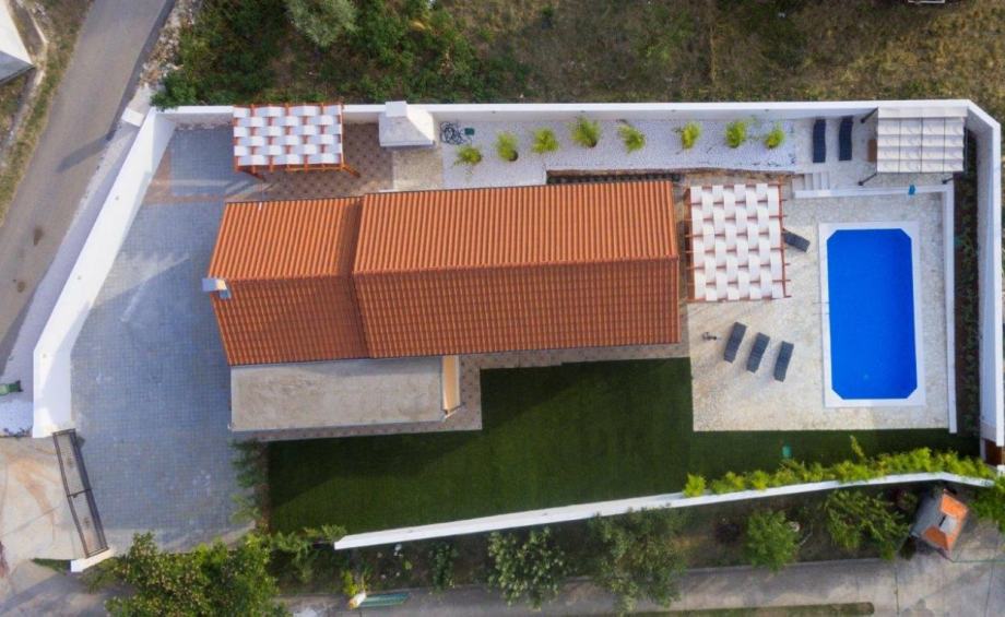 Prodaje se samostojeća kuća neto površine 139.25m2 izgrađena na zemljištu površine 699m2 u Debeljaku. Kuća se sastoji od dvije etaže: suterena i prizemlja. U suterenu površine 28.34m2 je smještena sauna. Prizemlje površine 110.91m2 sa sastoji do terase, hodnika, spremišta, kuhinje+blagovaonice+dnevnog boravka, tri spavaće sobe, hodnika i kupaonice i wc-a. U dvorištu se nalazi vanjski grijani bazen površine 24m2, jacuzzi i vanjski namještaj za sjedenje natkriven pergolom. Grijanje preko klima uređaja koji se nalaze u svakoj spavaćoj sobi i dnevnog boravku s mogućnošću grijanja na drva. U sobama je podloga parket dok su u ostatku kuće pločice. Kuća je dovršena 2018 godine. U dvorištu su osigurana 4 parkirna mjesta. Kući pripada i zemljište površine 600m2 koje se nalazi odmah uz bazen i koje je uključeno u oglašenu cijenu. Mirna i ugodna lokacija. Do centra Zadra svega 15minuta vožnje, do zračne luke Zemunik i ulaza na autoput svega 5 minuta vožnje. Udaljenost do mora iznosi cca 3.5km. Objekt se koristi u turističke svrhe pri čemu postiže odličnu zaradu stoga se kupnja ove nekretnine može pretvoriti u isplativu investiciju. Vlasništvo i ostala dokumentacija uredna.