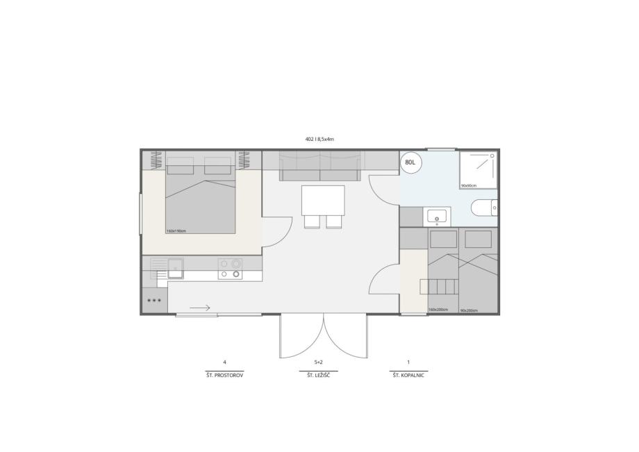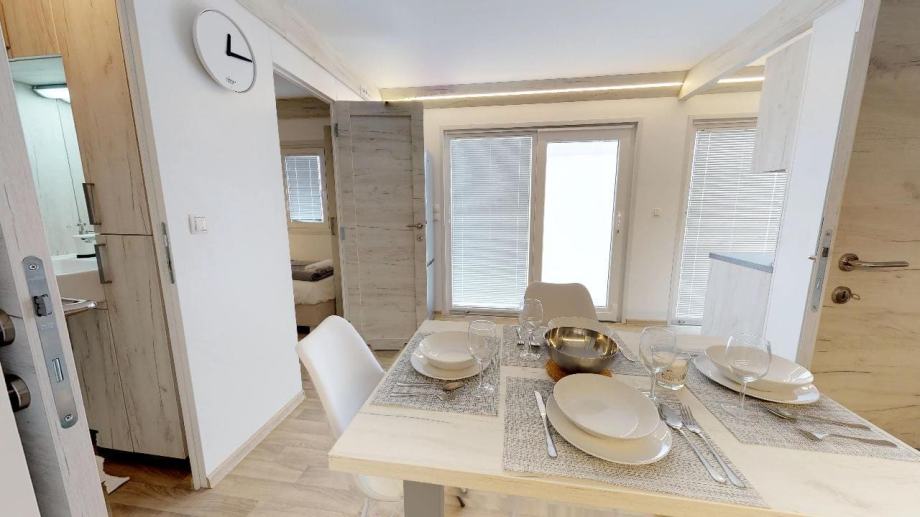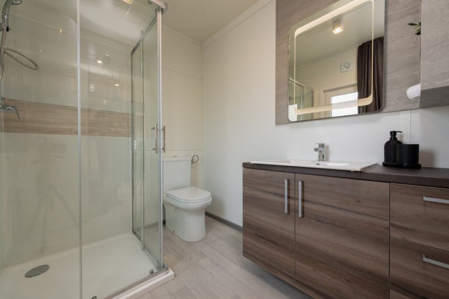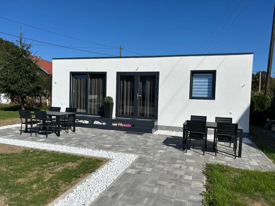Na prodaju je nova moderna mobilna kućica površine 40 m², idealna za obitelji ili iznajmljivanje. Kućica ima dvije spavaće sobe, dnevni boravak s kaučem na razvlačenje, kuhinju s blagovaonicom te kupaonicu s tušem. Kučica je izolirana, pogodna za korištenje i tijekom zime.