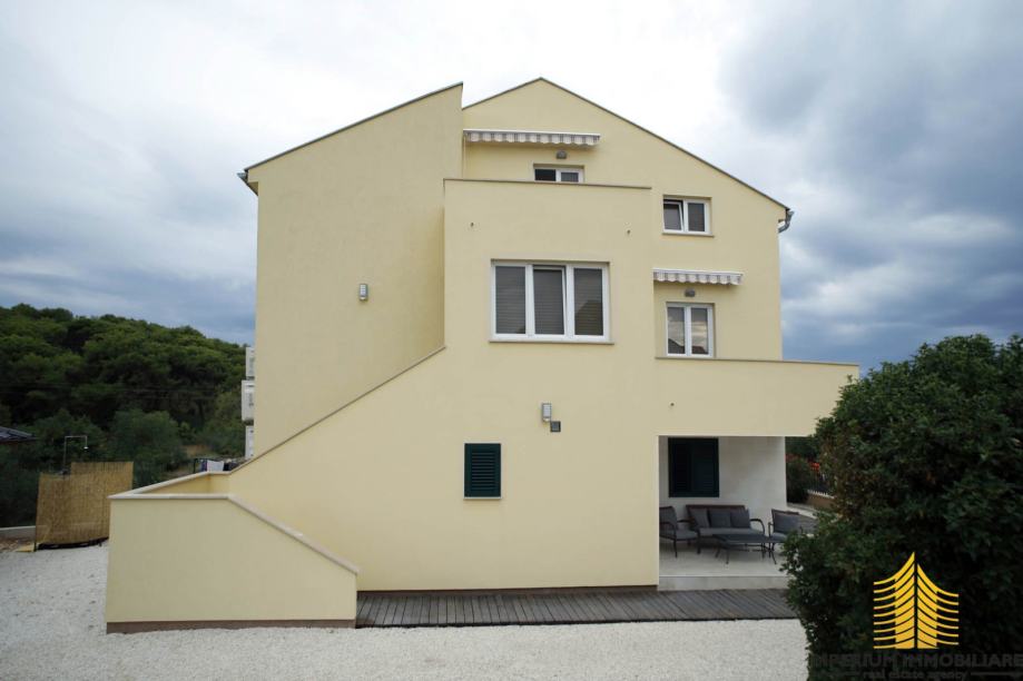 Na parceli od 380 m2 smješteni su 3 odvojena apartmana, podrum i vrtne sjenice.