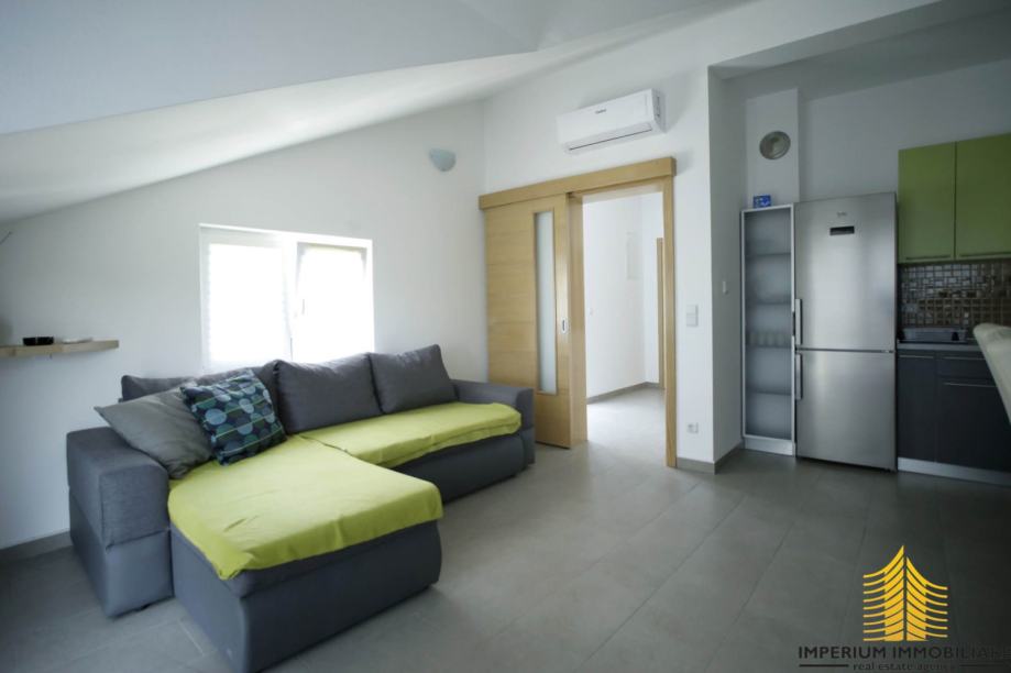 Apartman na II. katu: 57,34 m2 unutarnjeg prostora + 7,74 m2 terase (1 spavaća soba, hodnik, kupaonica, otvoreni dnevni boravak s blagovaonicom i kuhinjom)