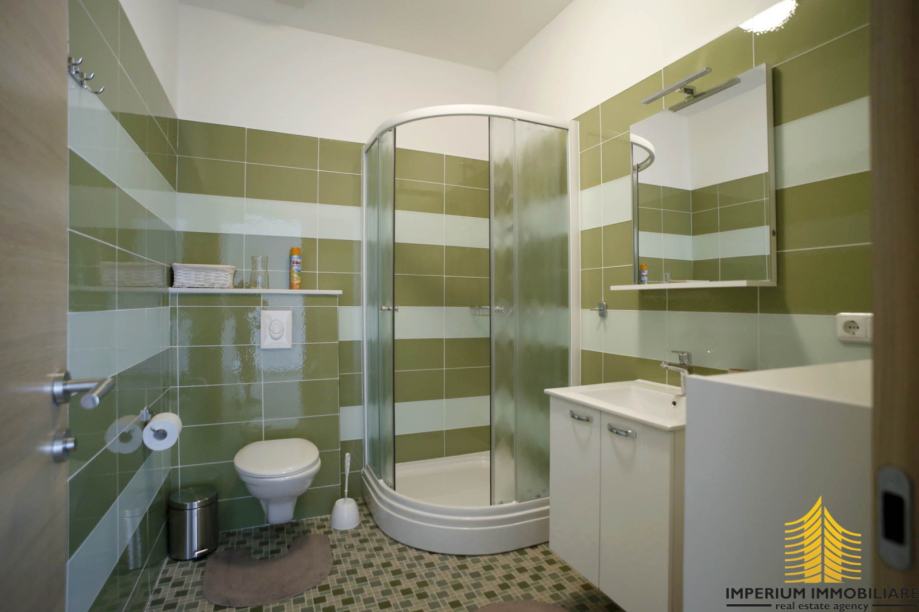 Apartman u prizemlju: 68,46 m2 unutarnjeg prostora + 9,00 m2 terase (2 spavaće sobe, kupaonica, wc, hodnik, otvoreni dnevni boravak s blagovaonicom i kuhinjom)