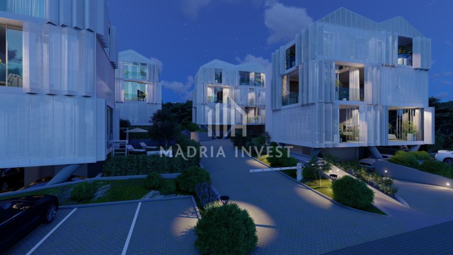 Moderna novogradnja u Diklu koju sačinjavaju 3 stambene jedinice, a koja se nalazi na odličnoj lokaciji, okružena zelenilom i od mora udaljena 650 metara. Nekretninu odlikuje visoki standard gradnje i opreme: aluminijski prozori s komarnicima i brisolejima, podne obloge visoke kvalitete (pločice i parket), podno grijanje, videoportafonski sustav u boji, centralno tipkalo za gašenje rasvjete, punionica za električna vozila itd. Planirani rok završetka gradnje je krajem 2026. godine.