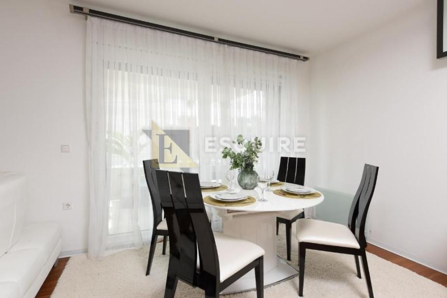 Stan se prodaje u potpunosti namješten i opremljen vrhunskim namještajem i kvalitetnim kućanskim uređajima.