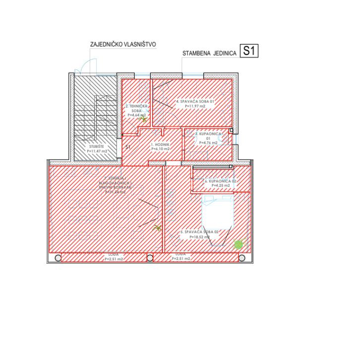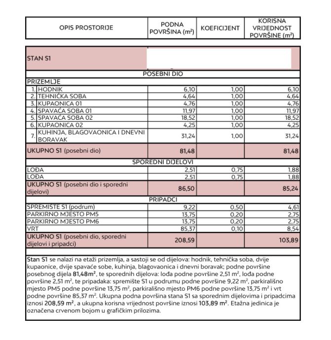 Diklo, dvosoban stan s vrtom, novogradnja!! Predmetna stambena građevina sastoji se od tri stambene jedinice. U prizemlju se nalazi stan 1, na 1. katu se nalazi stan 2, a na 2. katu se nalazi stan 3 dok su u podrumu smještena spremišta i dodatni sadržaji. Stan S1 se nalazi na etaži prizemlja, a sastoji se od dijelova: hodnik, tehnička soba, dvije spavaće sobe, dvije kupaonice, kuhinja, blagovaonica i dnevni boravak i dvije lođe, ukupno stambeno 85,24 m2 i pripadaka: spremište, dva parkirališna mjesta i vrt od 85,37 m2. Ukupno će etažna jedinica stana S1 imati 103,89 m2. Ugrađivat će se: - najkvalitetnija aluminijska stolarija na tržištu - harmo aluminijska sjenila (mogućnost potpune zaštite od sunca) - podno grijanje na principu dizalice topline u svim prostorijama - kondicioniranje zraka uz pomoć dizalice topline (grijanje i hlađenje, multi split sustav) -vrhunska talijanska keramika - sanitarije renomiranih svjetskih proizvođača - videoparlafon - sobna vrata sa skrivenim okovima - protuprovalna ulazna vrata. Završna obrada interijera uključuje vrhunske materijale; talijansku keramiku, višeslojni hrastov parket, alu stolariju, sanitarije renomiranih proizvođača kao što su Laufen i Hansgrohe, te dizajnerska unutarnja vrata. Ova nekretnina pruža idealan dom za obitelj no i mogućnost korištenja za nekretninu za odmor ili iznajmljivanja u turizmu. Investitor je firma te kupac ne plaća porez na promet nekretnina. Predviđeno useljenje i završetak je do kraja 2026. godine. Više informacija na upit.