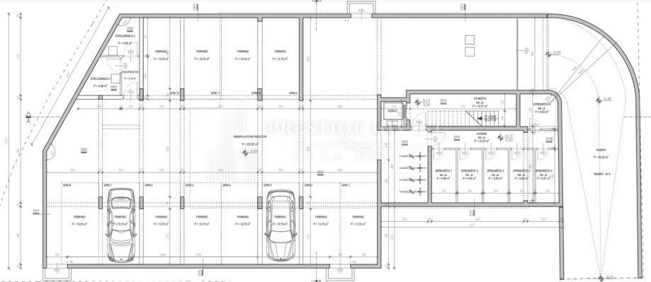 2 garažna mjesta u podzemnoj garaži: svako po 13,75 m² (obračunski po 6,88 m²)