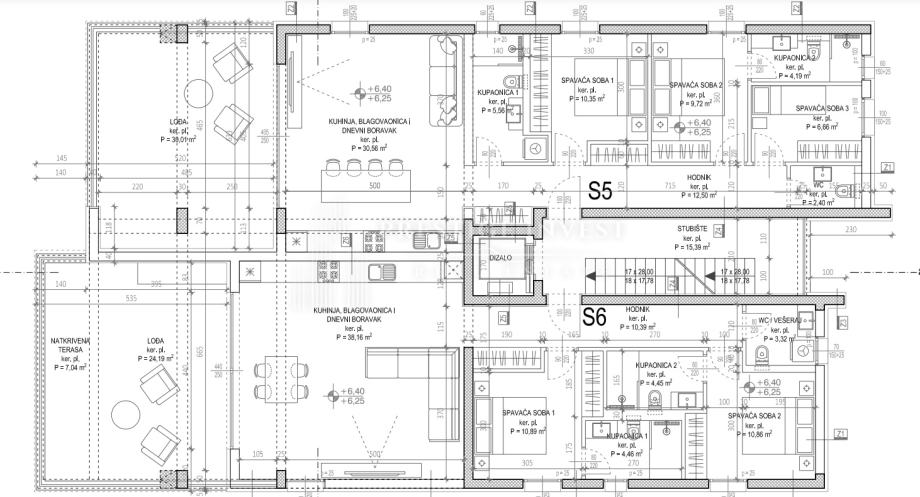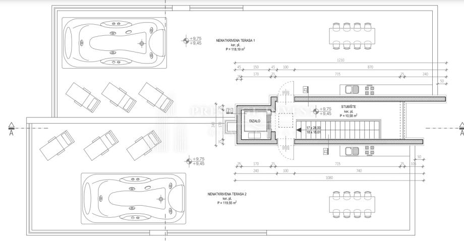 Veliku krovnu terasu: 118,19 m² (obračunski 59,10 m²)
