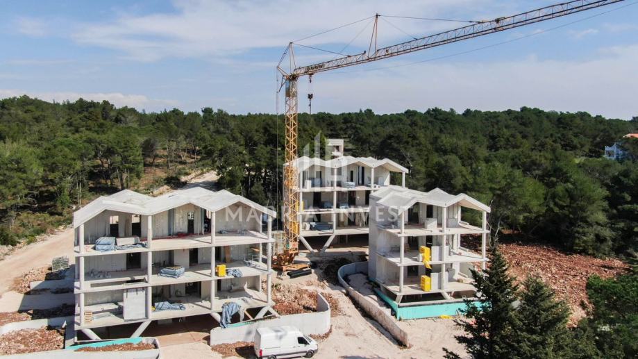 Moderna novogradnja u Diklu koju sačinjavaju 4 stambene jedinice, a koja se nalazi na odličnoj lokaciji, okružena zelenilom i od mora udaljena 650 metara. Nekretninu odlikuje visoki standard gradnje i opreme: aluminijski prozori s komarnicima i brisolejima, podne obloge visoke kvalitete (pločice i parket), podno grijanje, videoportafonski sustav u boji, centralno tipkalo za gašenje rasvjete, punionica za električna vozila itd. Planirani rok završetka gradnje je krajem 2026. godine.
