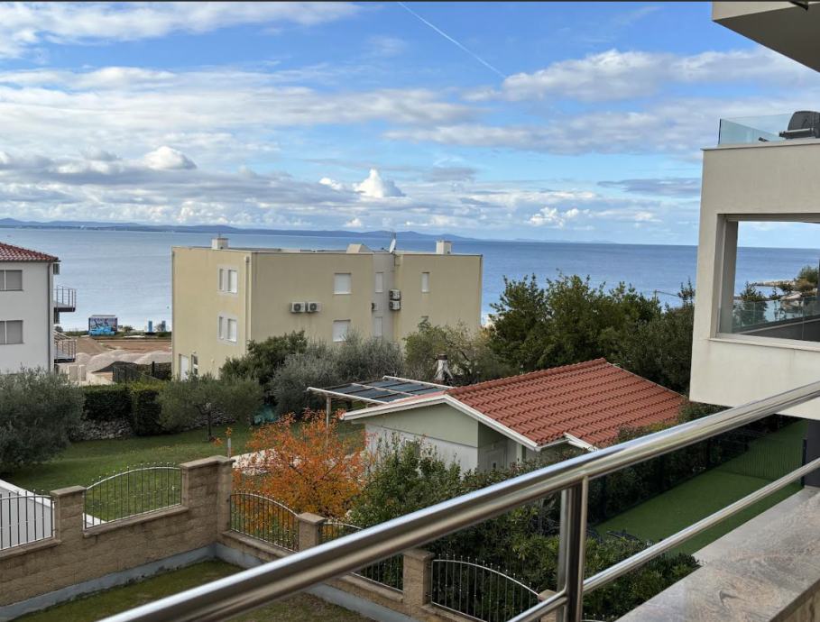 Zadar, Diklo, moderna vila sa apartmanima, prekrasan pogled na more. Villa površine 420m2, sagrađena na zemljištu od 800 m2, 100 m od mora i plaže. Sastoji se od tri etaže (podrum, prizemlje i kat). - U podrumu se nalaze velika prostorija za druženje (kuhinja, kamin), garaža, zasebni wc, praonica, sušionica, konoba, kotlovnica, stubište ( 101,88 m2 ); -Na prizemlju se nalazi veliki trosoban stan ( 166,58m2 )koji se sastoji od 3 spavaće sobe, kuhinje, prostrane blagavaone ( 23,33 m2), prostranog dnevnog boravka ( 28,49 m2), ostave, kupaonice, wc-a , lođe, prostrane terase ( 24,91 m2), stepenica, ulaznog prostora; - Na prvom katu ( 152,48 m2) nalaze se 2 odvojena stana, jedan jednosoban, drugi dvosoban, te zasebno dvije sobe s vlastitim kupaonicama. U dvorištu nalazi se velika natkrivena ljetna kuhinja s kominom i kupaonicom. Lijepo uređena okućnica, sa mnogo zelenila, kamena, sa otvorenim pogledom na more. Iz svake prostorije se pruža pogled na more. Kuća je smještena na lijepoj lokaciji 100 m od mora i plaže, u okruženju vila sa bazenima, te lijepo uređenih okućnica. Pogodno za bavljenje turizmom. Više informacija na upit. Tražena cijena je 1.200.000 EURA.