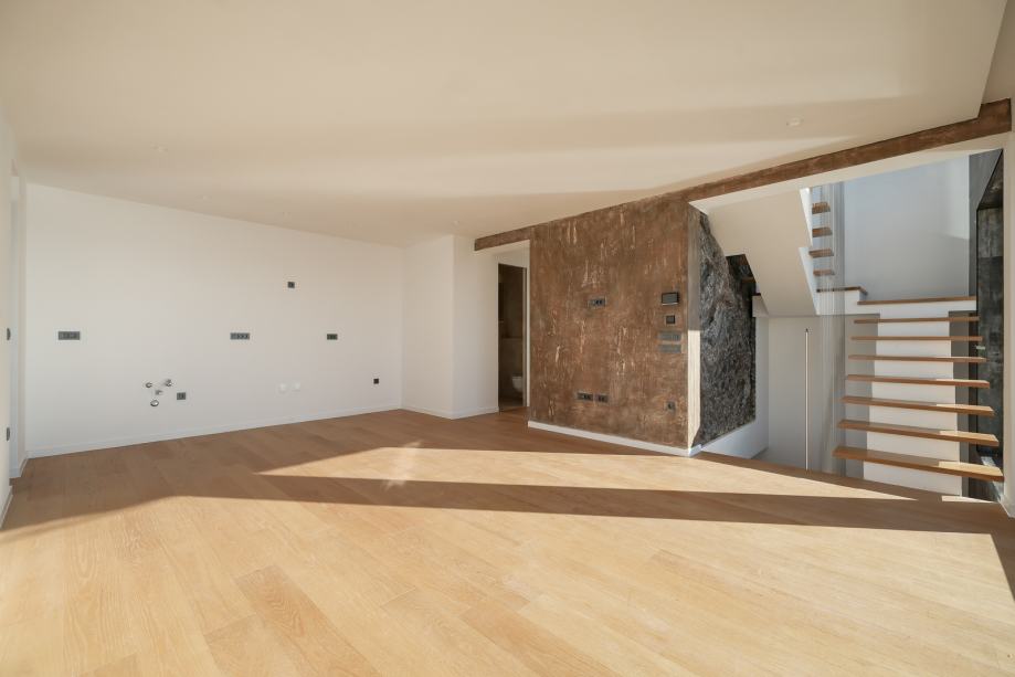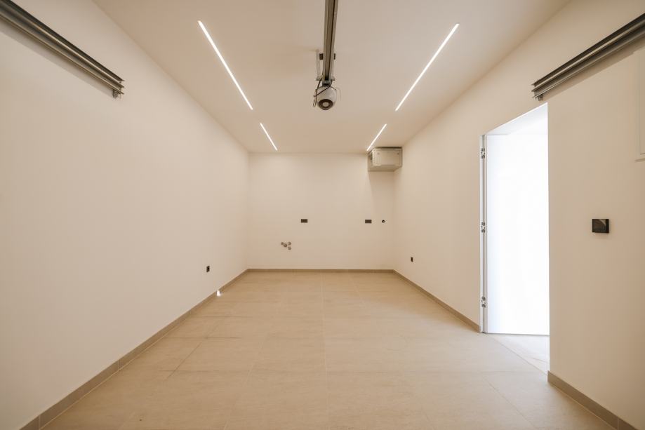 Villa je projektirana moderno sa ravnim krovom i izgrađena je najkvalitetnijim materijalima na tržištu, a projektirana je tako da zadovoljava A+ energetski razred.