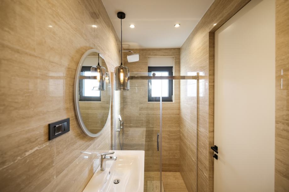 - u kupaonicama ugrađen polirani kamen travertin i sanitarije visoke kvalitete