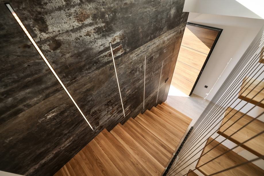 - Garažna i ulazna vrata skrivena kompakt fasadom prirodne boje