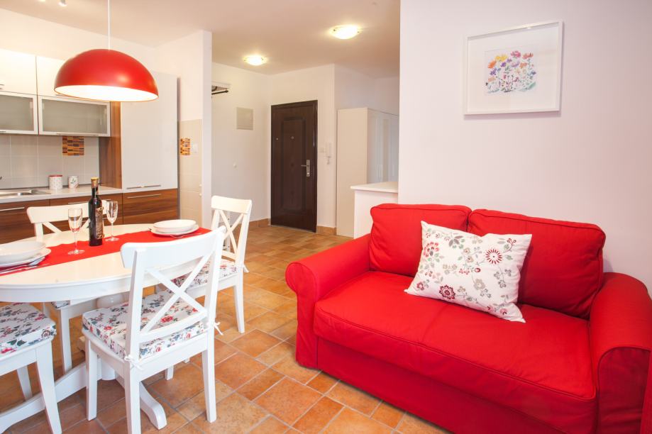 Prodaje se kompletno namješten, stan se uglavnom koristio za turizam.