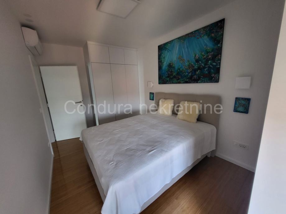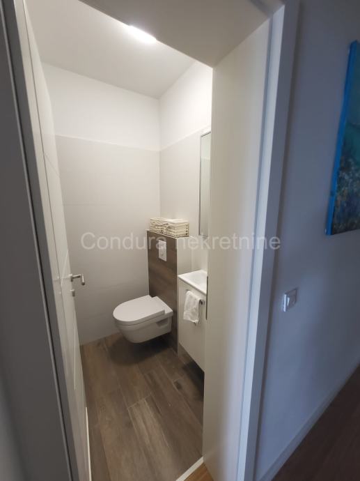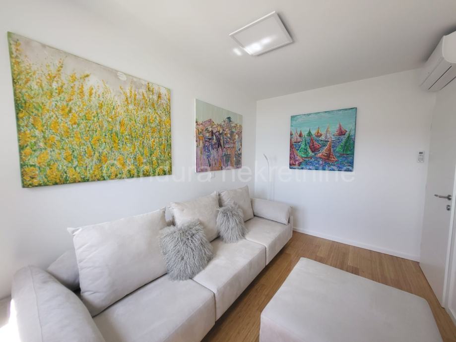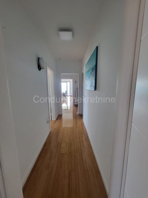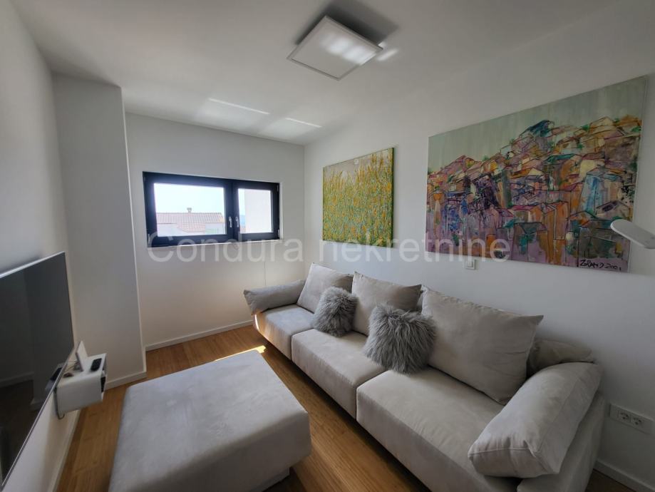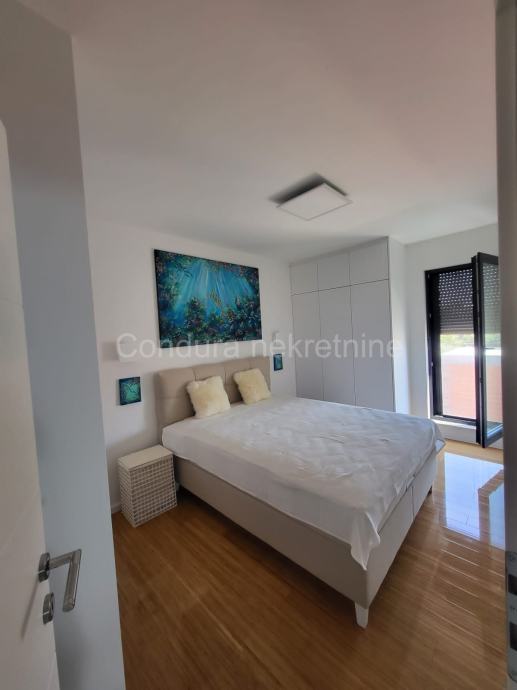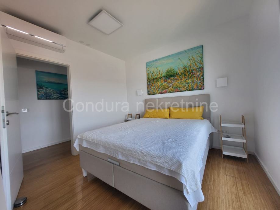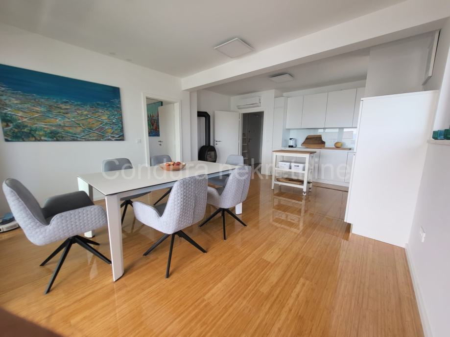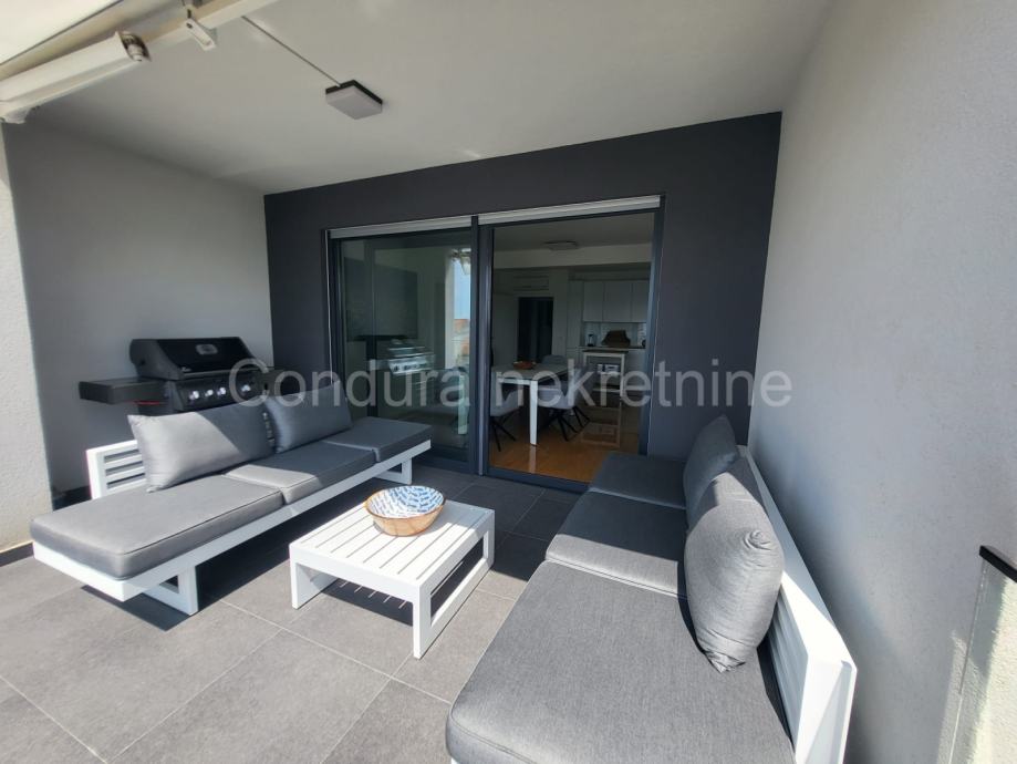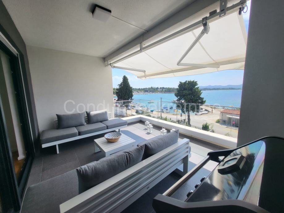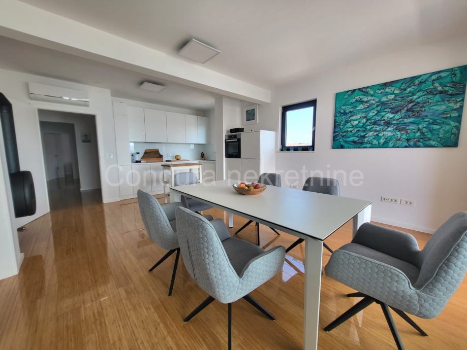 Diklo (Zadar) - na prodaju je prekrasan, potpuno namješten, moderan trosoban stan na 2. katu nove stambene zgrade, tek 30 m od mora i plaže, s pogledom na more.