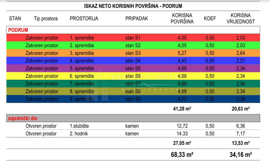 Ukupna neto površina stana s pripadcima: 78,54 m²