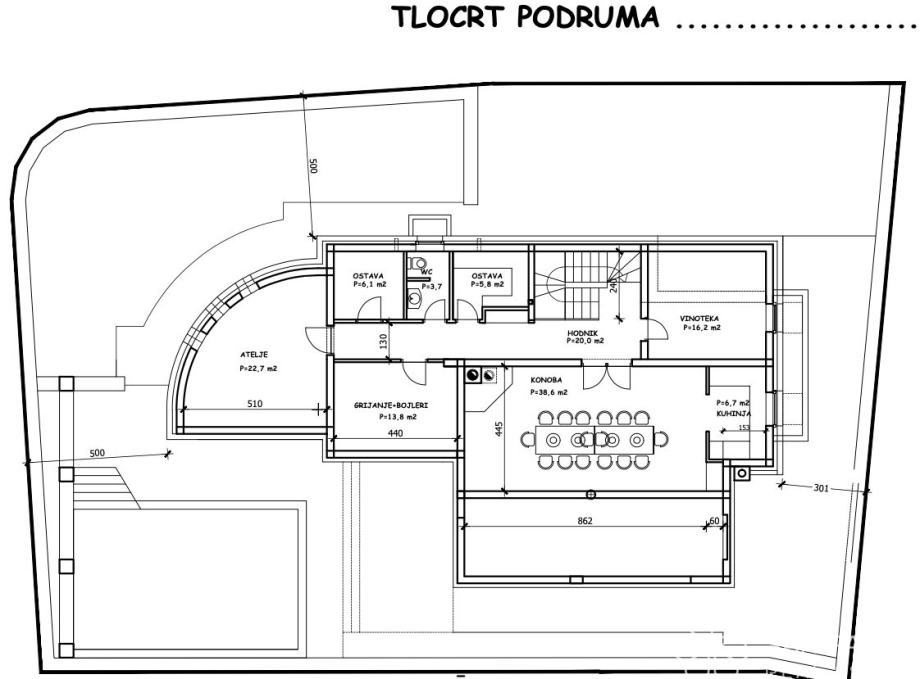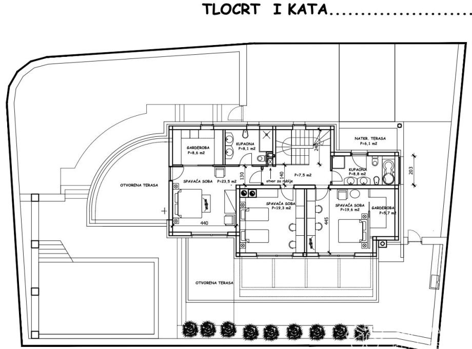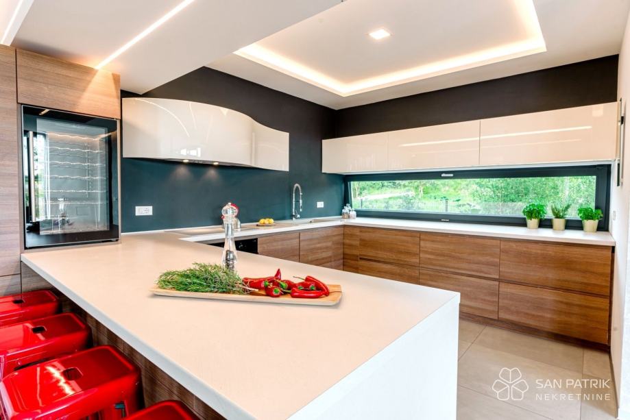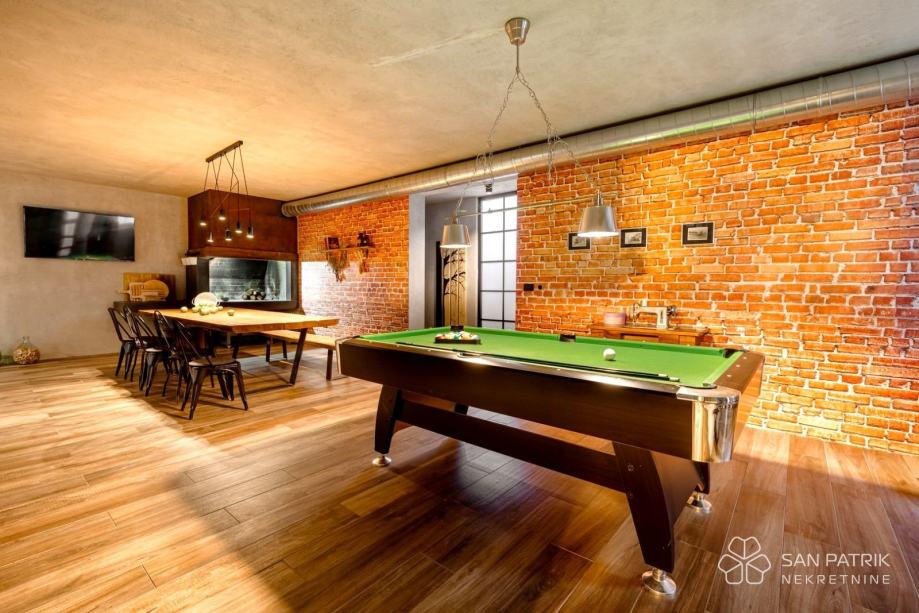 Na parceli površine 650 m2 prodaje se dizajnerska vila ukupne površine 370 m2 koja se na tri etaže (podrum, prizemlje i kat) sastoji od 4 spavaće sobe, walk-in ormara, 3 kupaonice, 4 terase, 2 kuhinje, privatnog vanjskog bazena, velikog dnevnog boravka i blagovaonice s kaminom, konobe, radne sobe, bujnog vrta s automatskim sustavom zalijevanja, 3 parkirna mjesta.